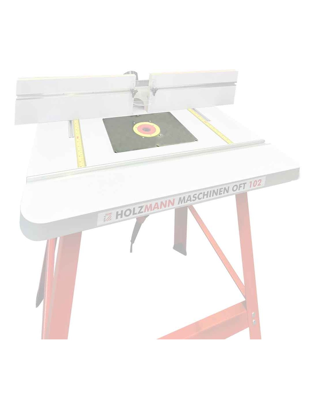 Insert de table en aluminium robuste, adapté au plan de travail OFT102. (Trous de fixation adaptés à la défonceuse HOLZMANN OBF1200_230V)