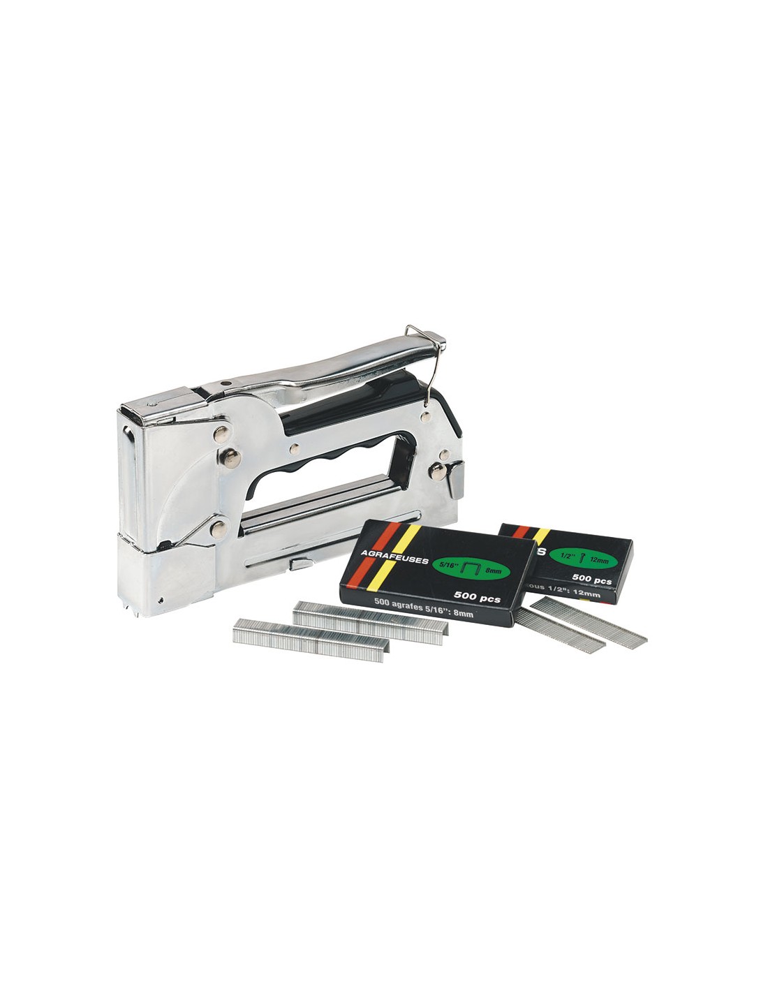 Avec 500 agrafes et 500 clous.