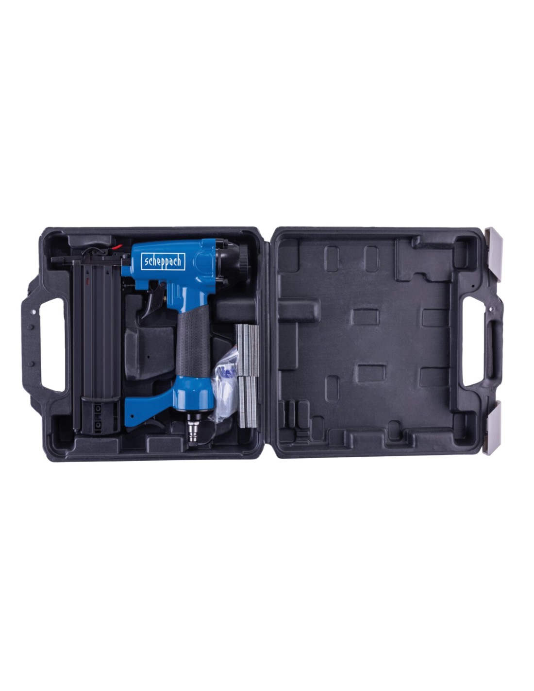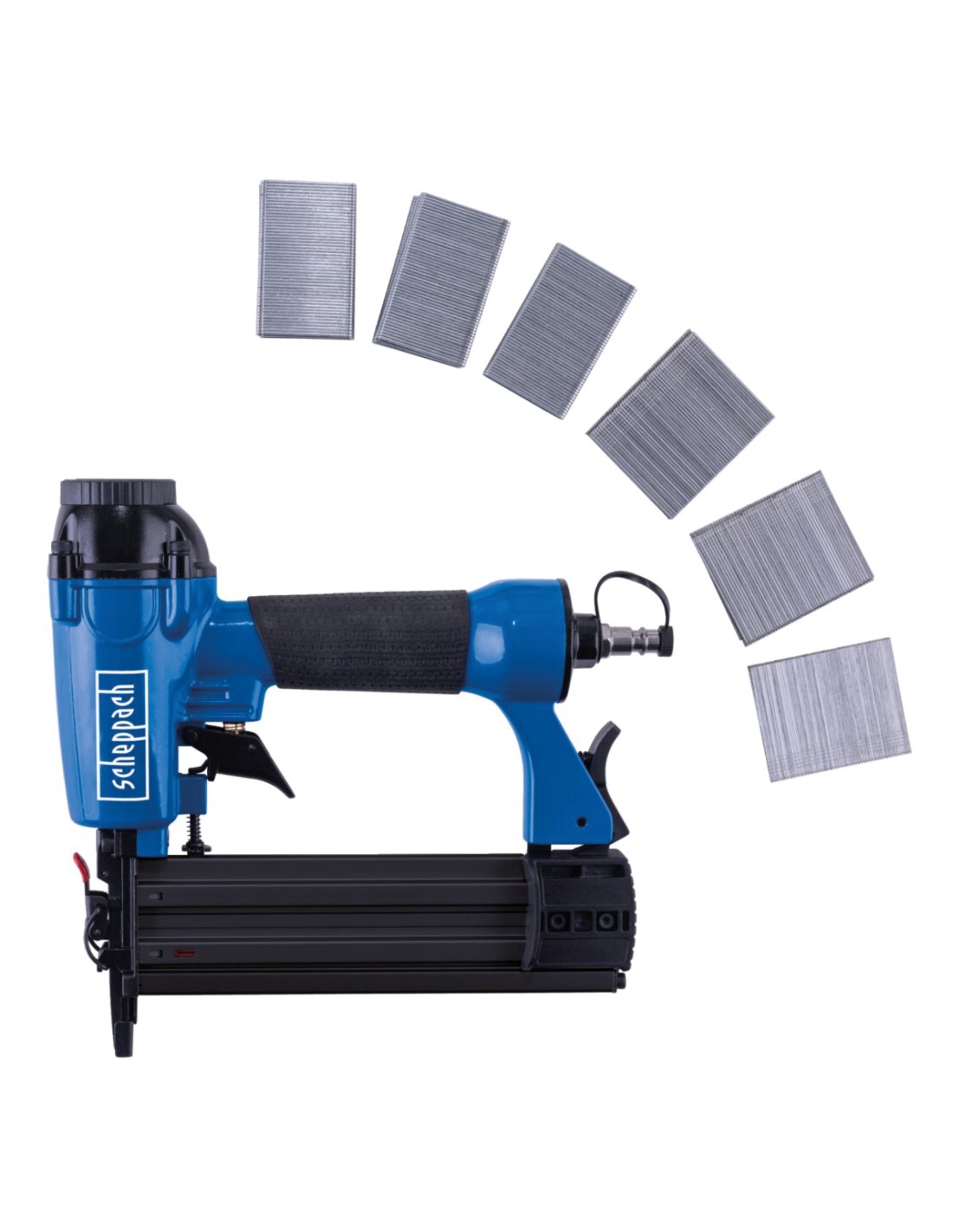 Agrafeuse/cloueuse pneumatique professionnelle, idéale pour les travaux de menuiserie légère, de finition, d'assemblage de panneaux et de bricolage. Compatible avec les clous de type F de 15 à 50 mm et les agrafes de type 90 de 10 à 40 mm, il est équipé d'une poignée ergonomique antidérapante et d'un raccord rapide pratique pour le raccordement au compresseur. Le corps de la machine en alliage léger assure robustesse et facilité de manipulation même en cas d'utilisation prolongée. Dispositif de sécurité intégré pour éviter une activation accidentelle.