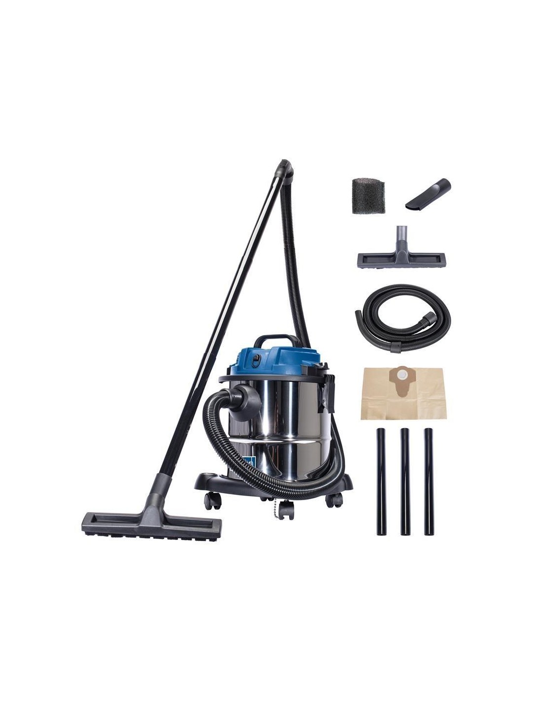 Avec la poignée, le support de câble intégré, le réservoir robuste en acier inoxydable et les roulettes pratiques, le Scheppach NTS20 est une possibilité de couvrir la totalité des besoins toutes au tour de la maison ainsi que le secteur de l‘atelier.