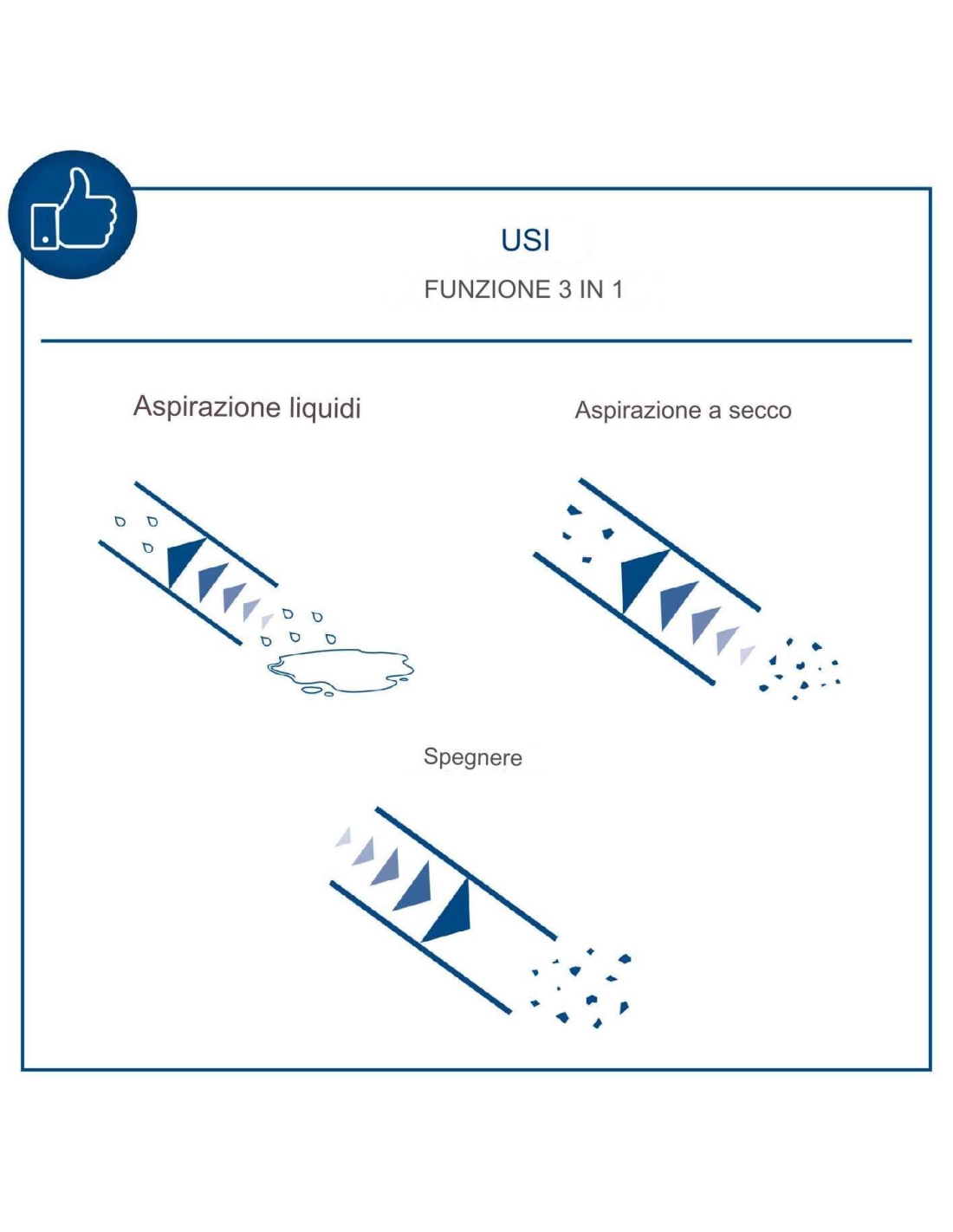 Un filtre en mousse est inclus dans la livraison pour l'aspiration humide. L'eau aspirée peut être facilement vidée du récipient via un robinet de vidange sans démonter l'aspirateur au préalable.