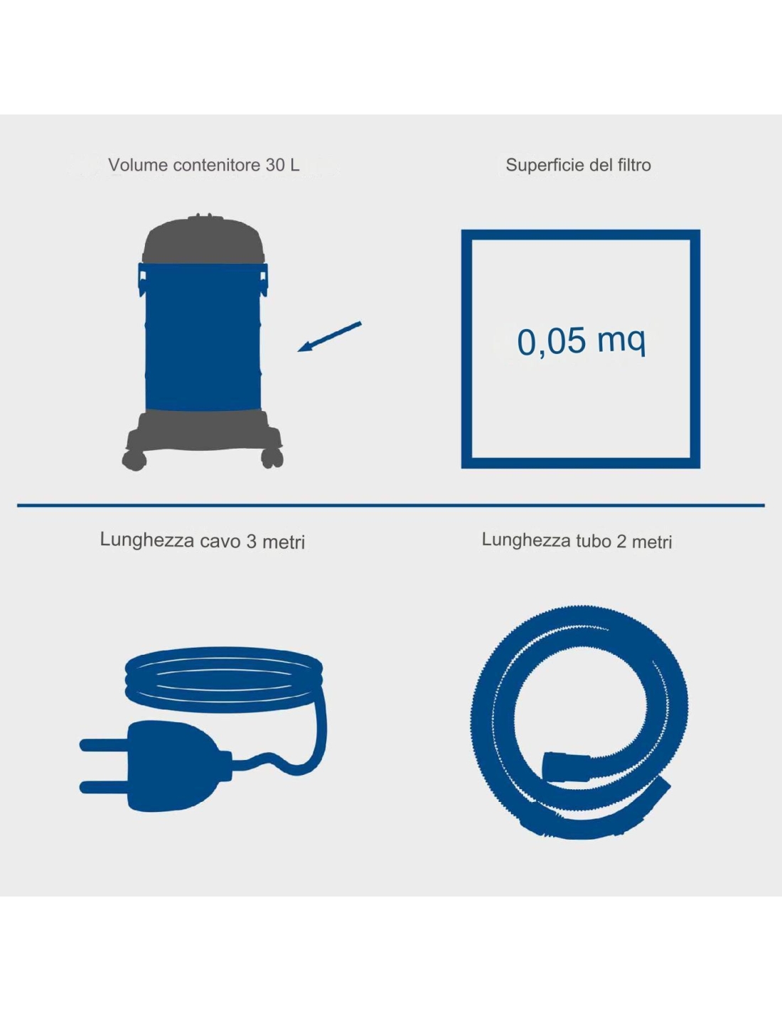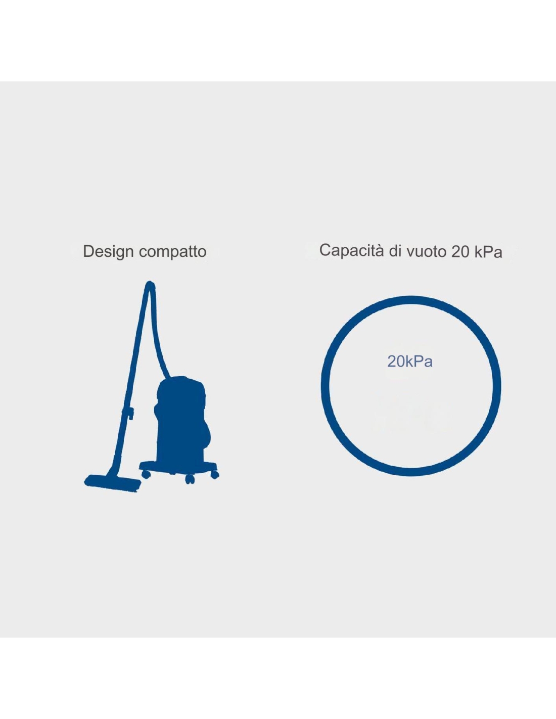 Un puissant moteur de 1 200 watts fournit une puissance d'aspiration de 20 kPa. Le réservoir en acier inoxydable contient 30 litres, ce qui signifie que l'aspirateur eau et poussière peut facilement relever des défis plus importants.