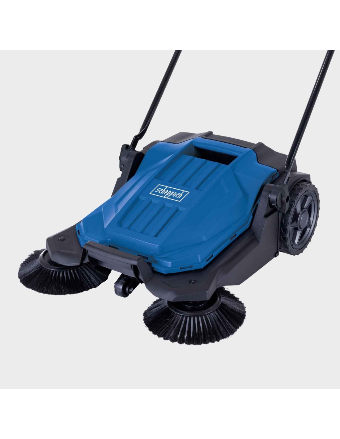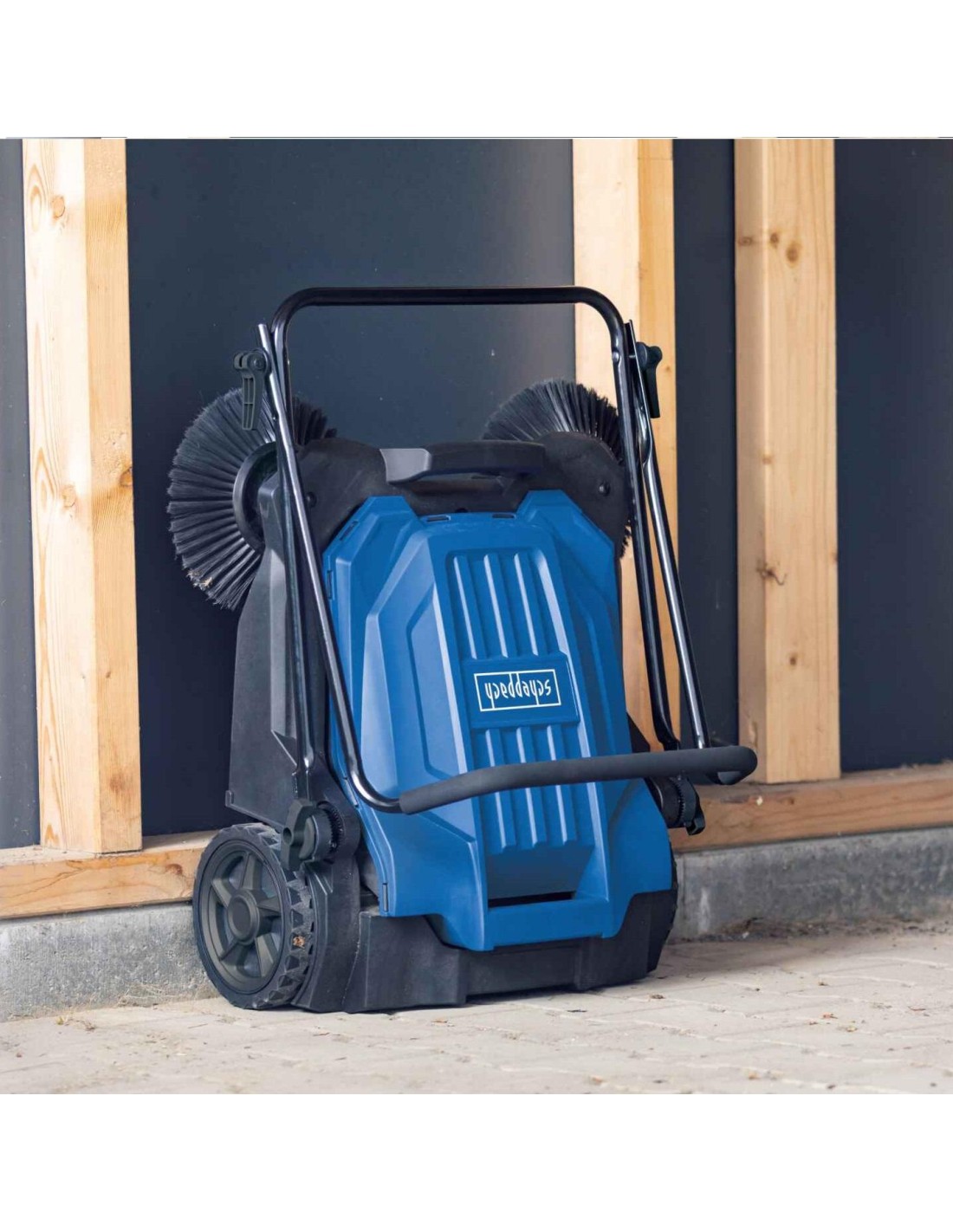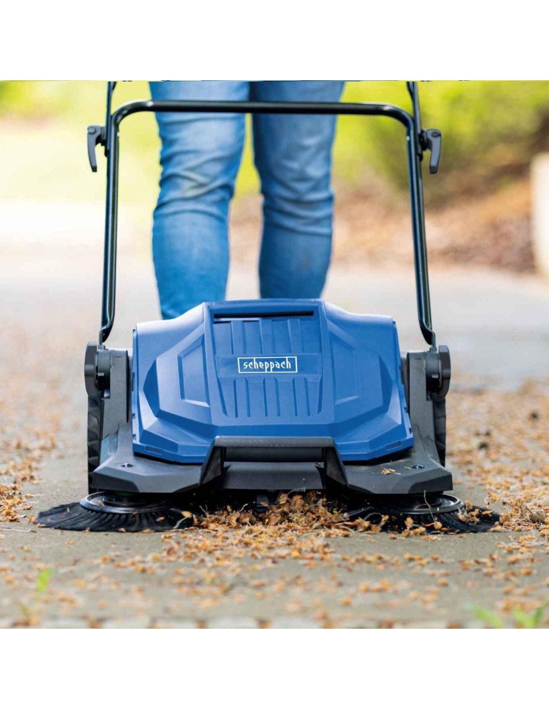 La balayeuse manuelle Scheppach S800 est idéale pour balayer les allées, les terrasses, les cours ou les trottoirs. Grâce à une largeur de 650 mm et au système Scheppach à 3 brosses, avec deux brosses disques et une brosse rouleau, il balaie des surfaces allant jusqu'à 2 600 m2. Les déchets finissent dans le conteneur de 20 litres en plastique résistant aux chocs et peuvent être facilement vidés. Grâce au loquet à dégagement rapide, la poignée peut être facilement repliée vers l'avant pour un rangement peu encombrant.