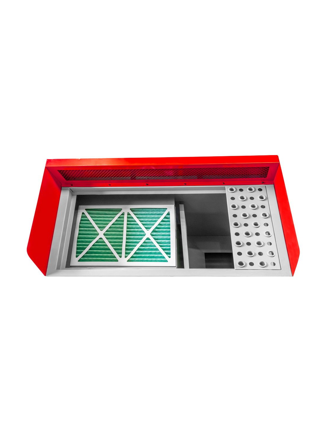 L'air d'aspiration filtré est recyclé dans la zone de travail, garantissant un air propre pendant le travail