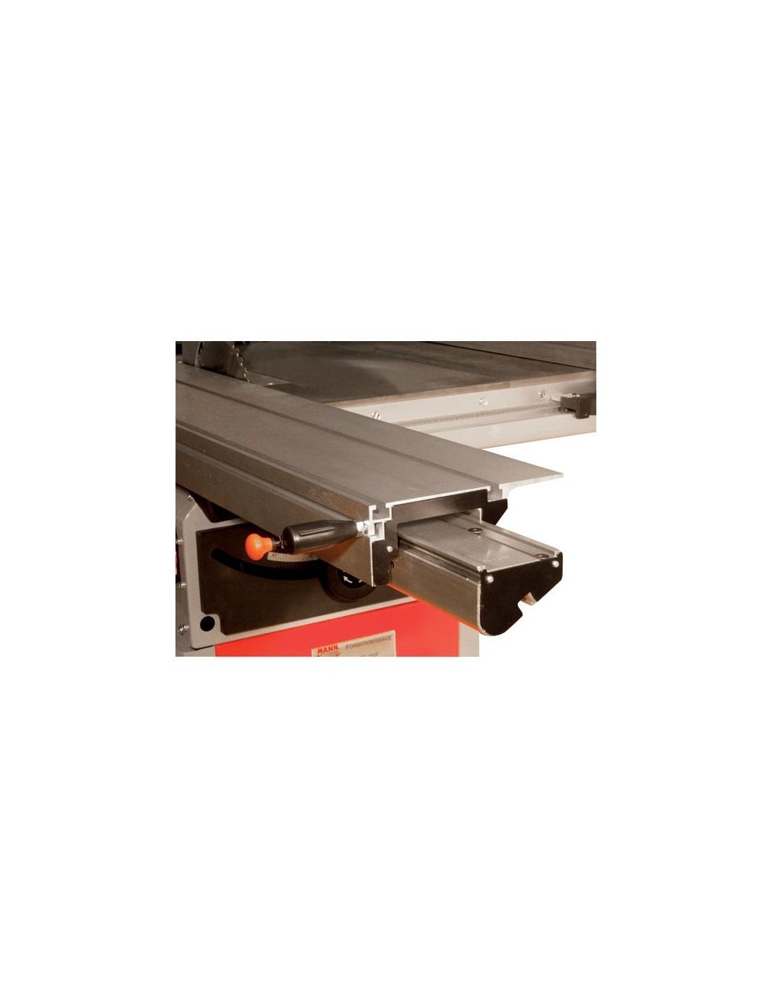 La TS 250F est équipée d'une grande table de travail en fonte de 800x670mm et d'une table coulissante en aluminium de 1650x250mm. Équipée d'un bras large et pivotant soutenu par un autre bras placé sur la table coulissante, de plus le réglage de la hauteur et de l'angle de la lame de scie est absolument régulier et précis. Enfin, l'extension de la table est de 210x400mm.