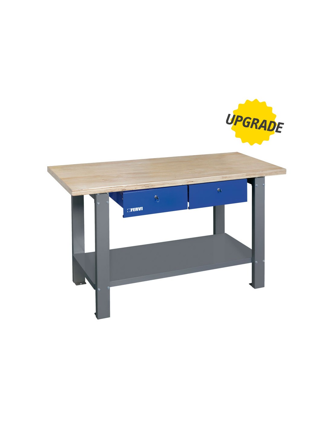 Avec plateau en bois et 2 tiroirs verrouillables.
