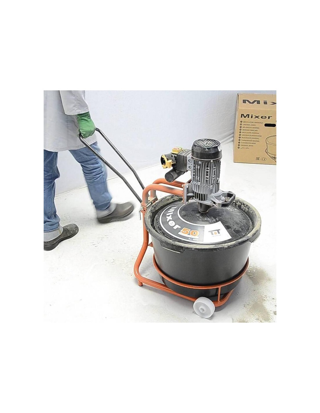 Les mélangeurs de la série MIXER de Battipav mélangent parfaitement et de manière homogène les colles pour carrelage, ciment, peinture et résines. Ils travaillent de manière autonome et pétrissent jusqu'à 50 kg de matériau. La poudre est versée directement sur la protection plastique et centrifugée pour un mélange correct, obtenant un mélange homogène et sans grumeaux.