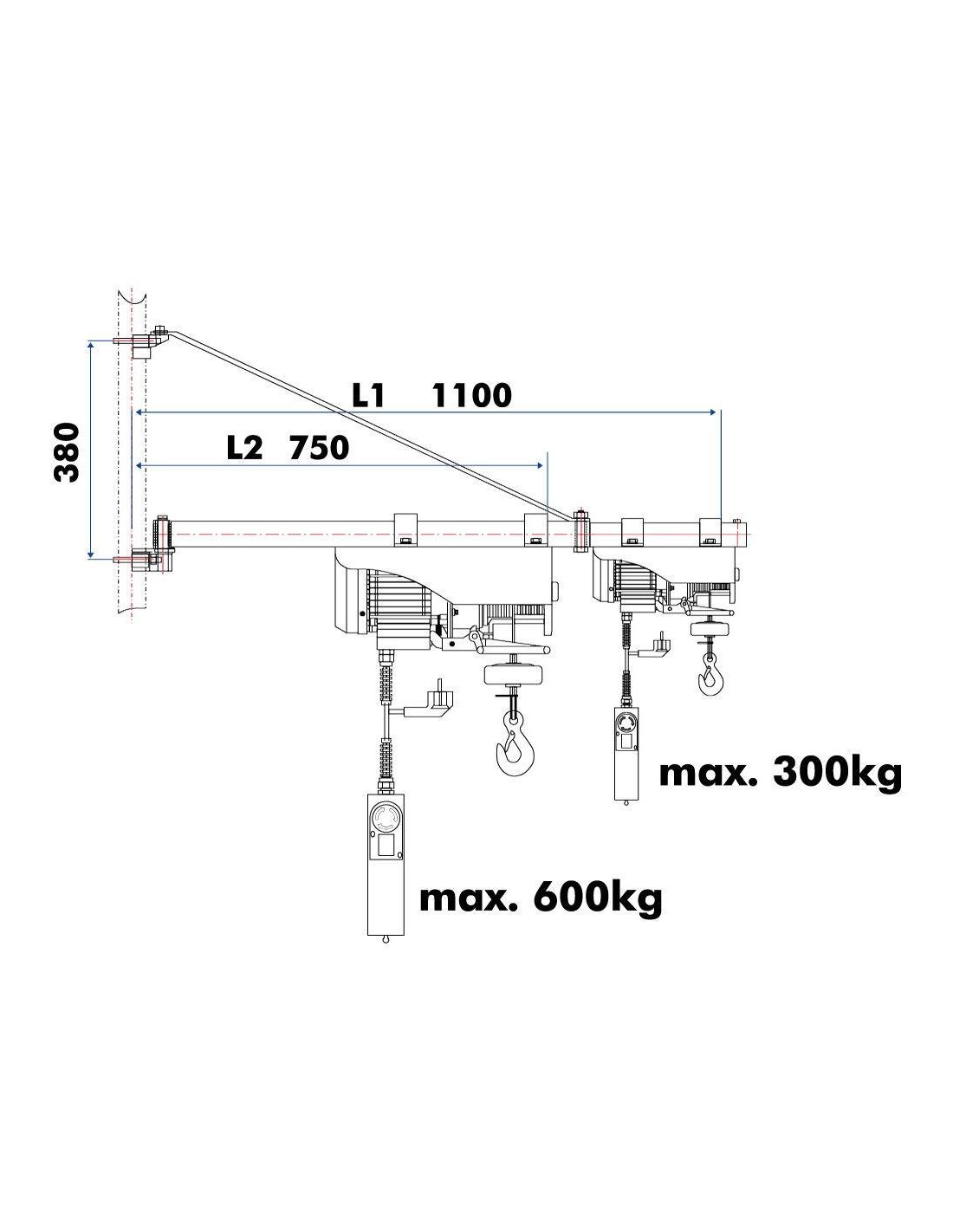 SA3001100: Portée à 750/1100 mm, max. 600/300 kg (L2/L1)