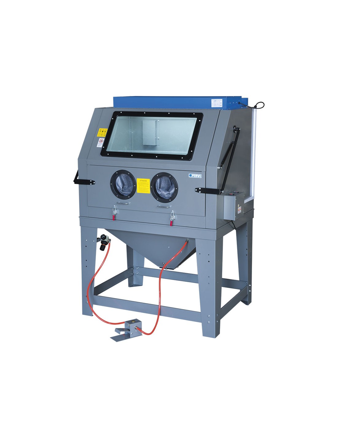 Type cyclone, filtre papier, ouverture frontale et plafonnier avec 3 lampes fluorescentes.