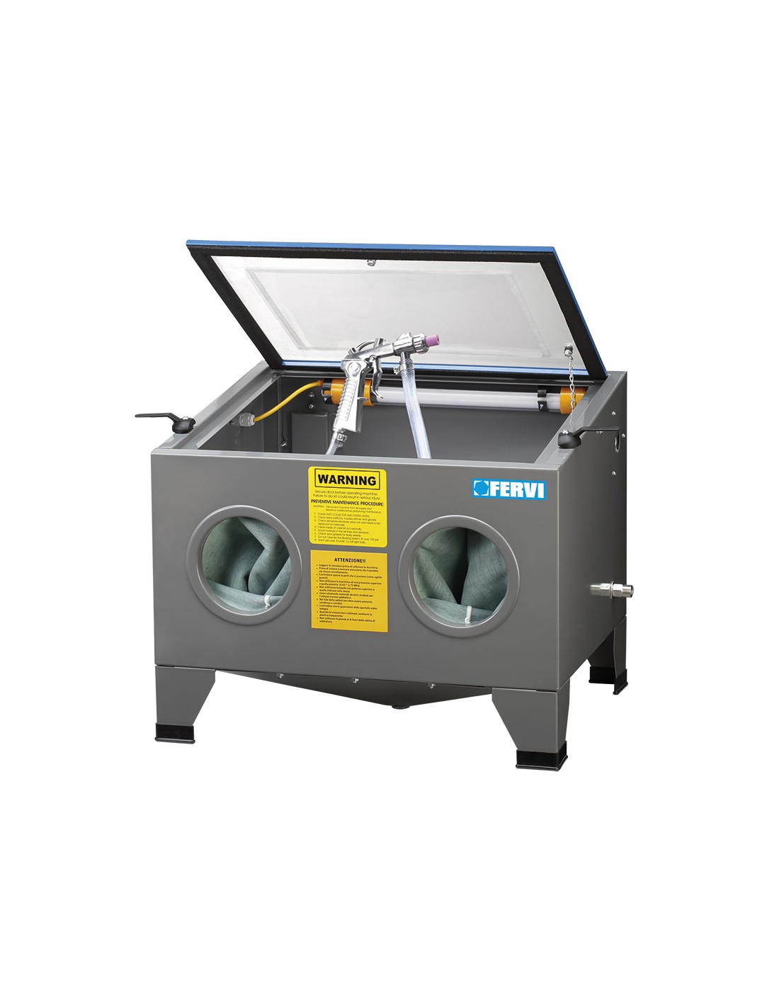 Avec possibilité de raccordement d'un aspirateur, éclairage avec lampe basse consommation, pistolet et gants.