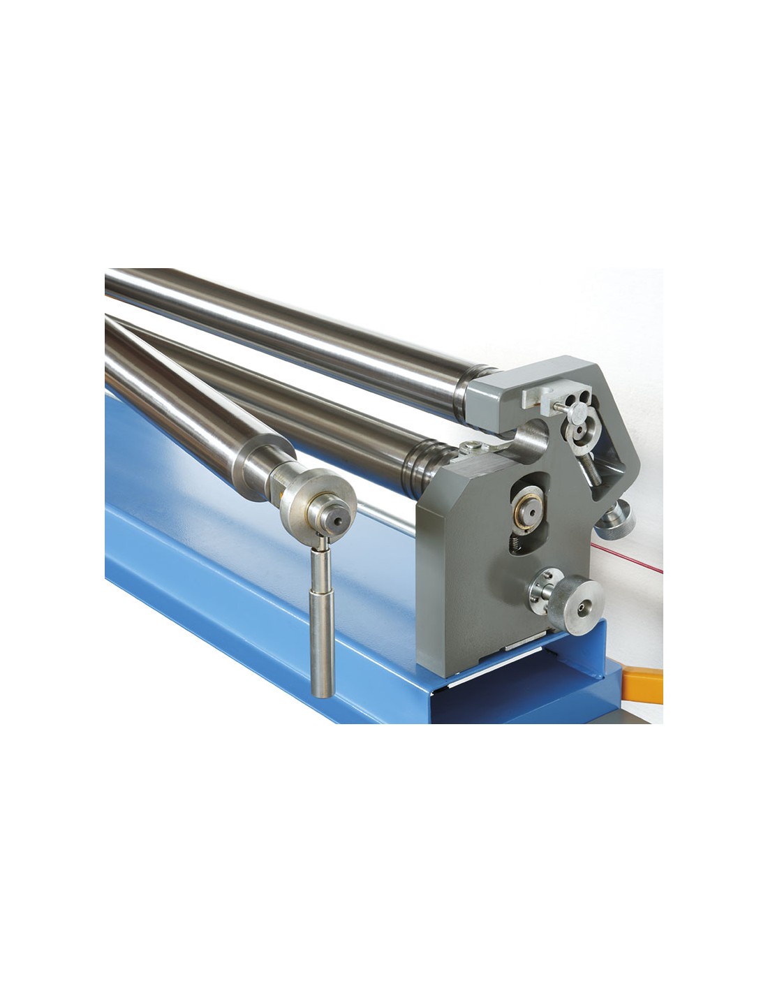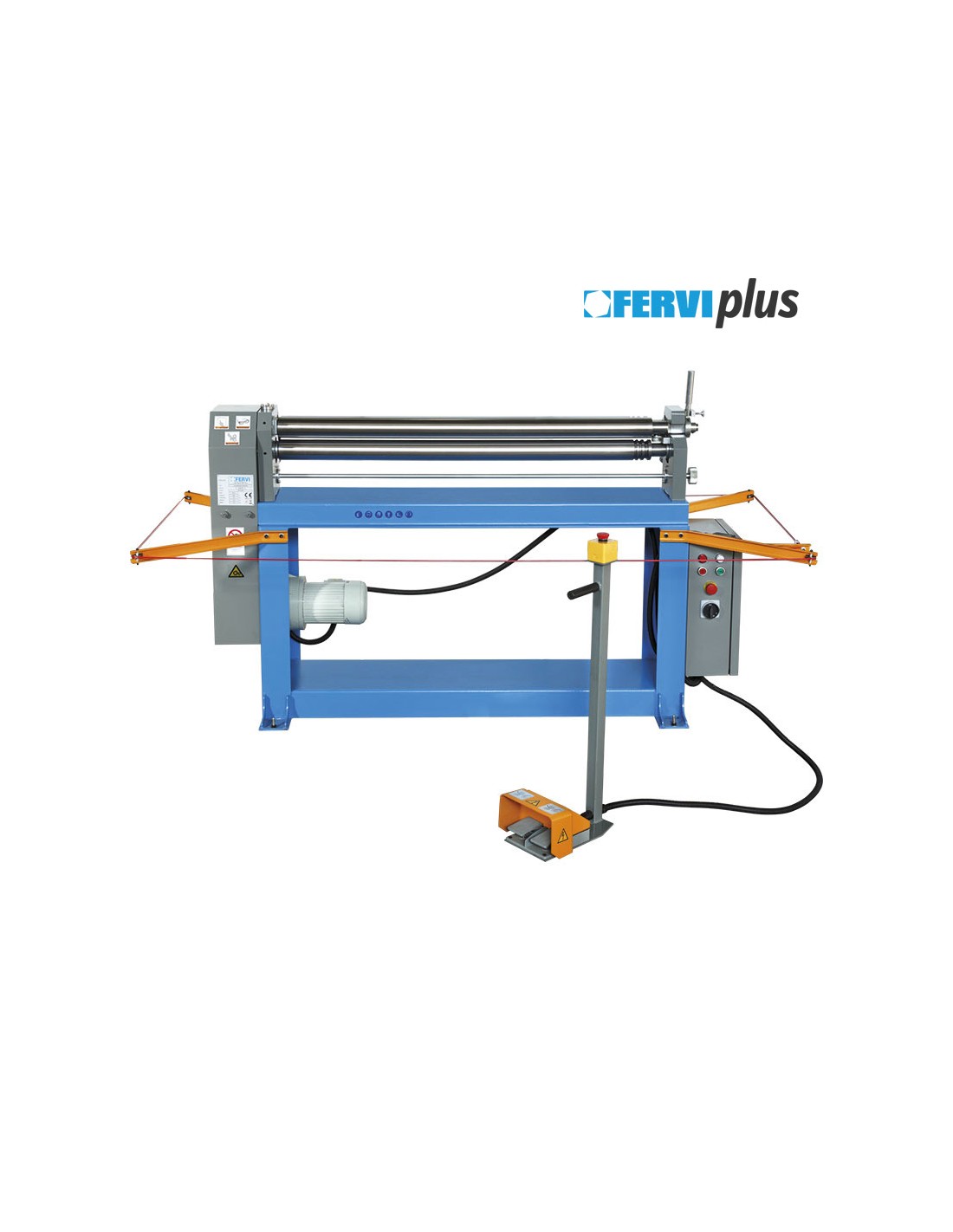 Avec 3 rouleaux en acier dureté HRC52, corde de sécurité avec micro-interrupteur 3 fonctions, commandes mobiles avec double pédales de commande avant/arrière et interrupteur d'urgence champignon.