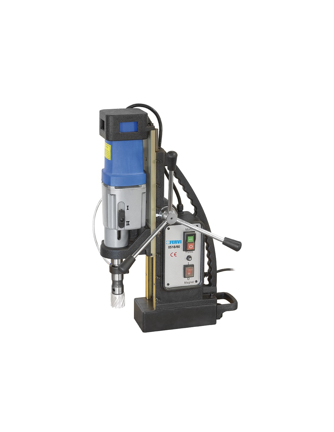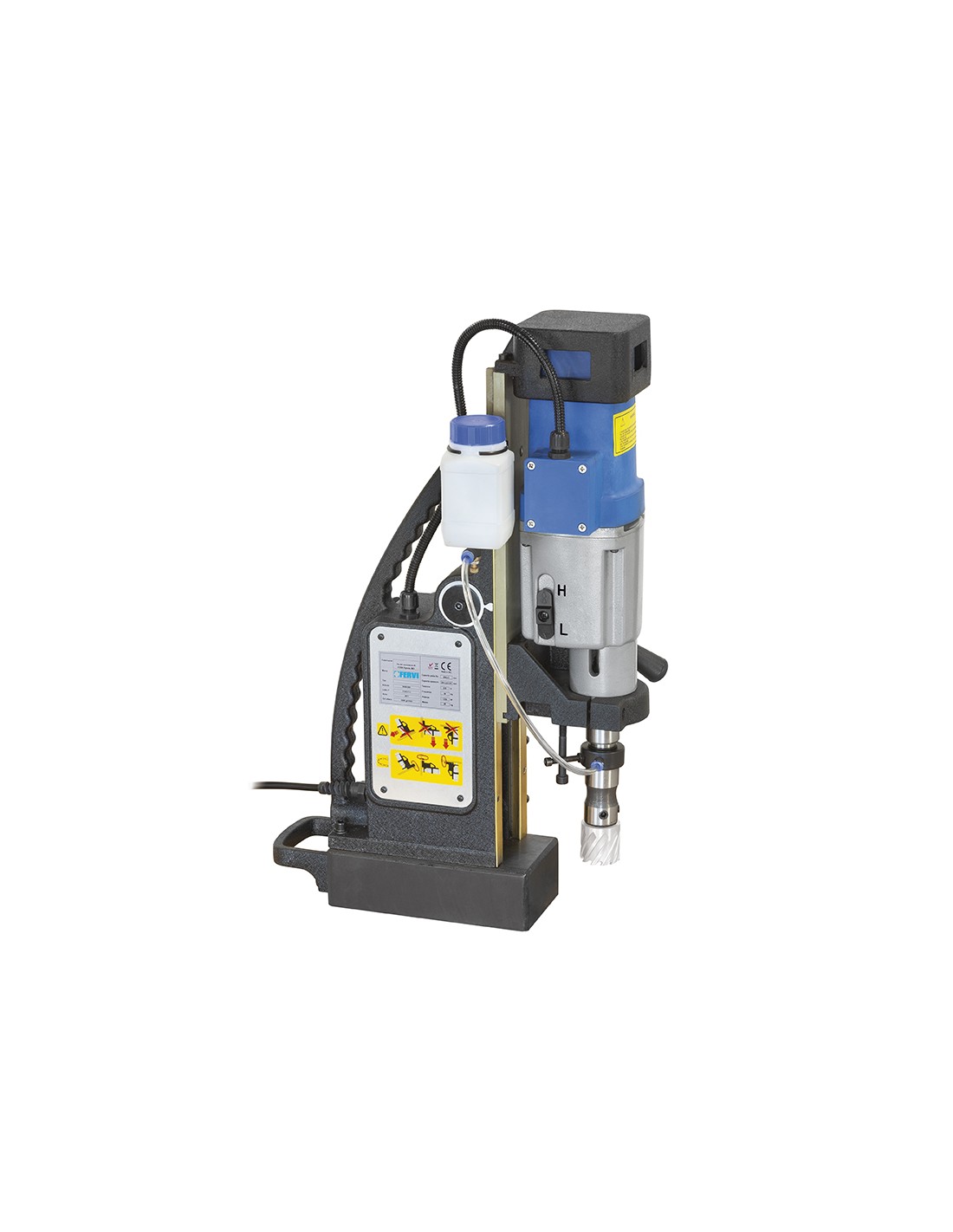 Avec système de refroidissement pour forets à carotter jusqu'à 80 mm avec queue weldon de diamètre 19,05 mm, forets à queue cône morse mt 3 et forets à queue droite jusqu'à diamètre 20 mm avec queue réduite de diamètre 13 - 16 mm.