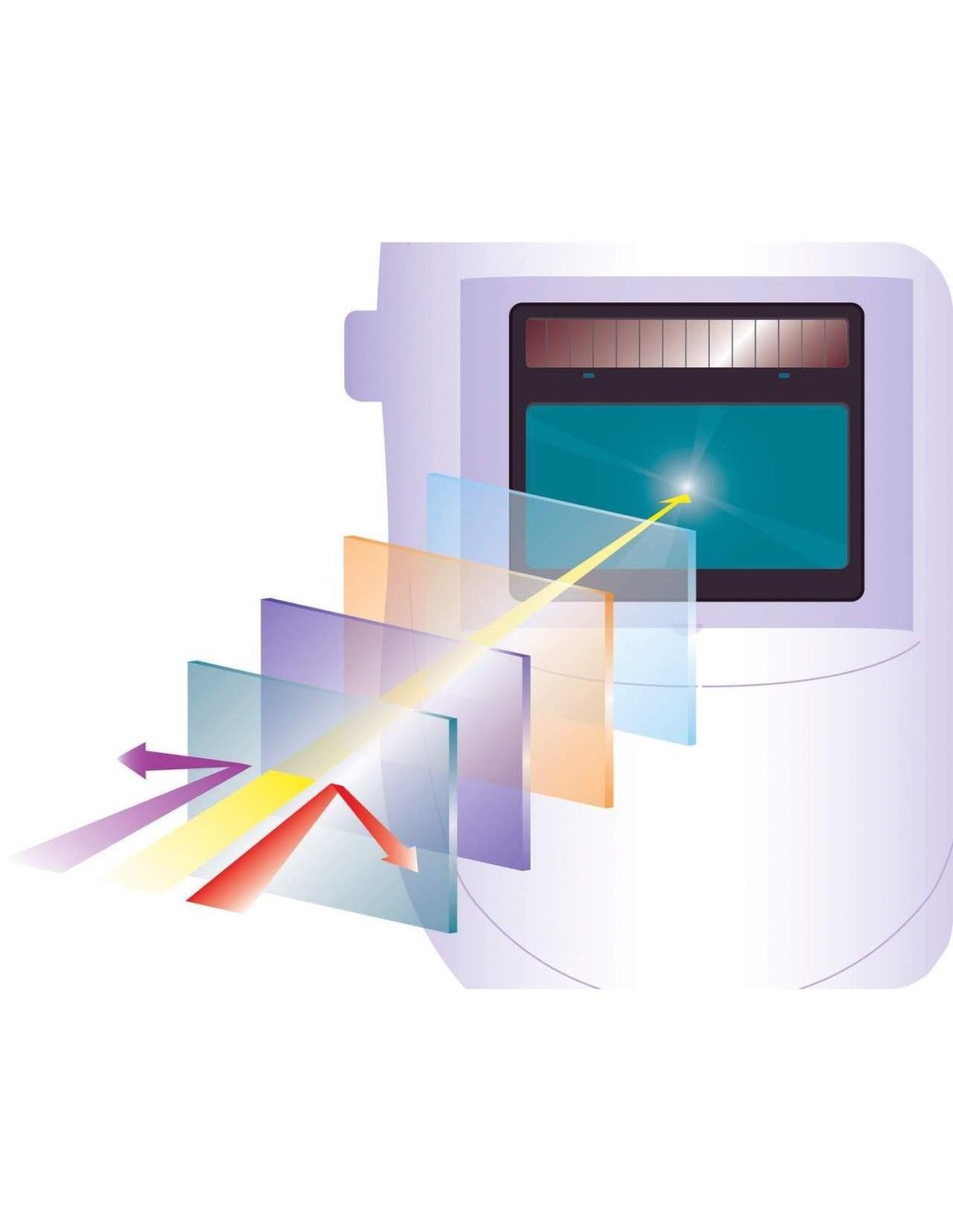 Réglages : sensibilité, sélection de la teinte, temps de commutation, mode meulage/brasage