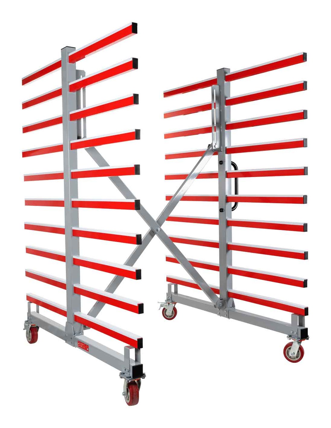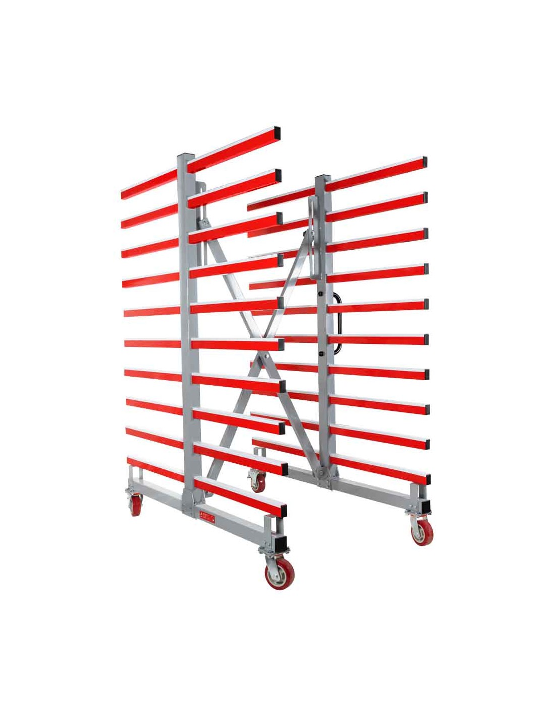Le chariot HOLZMANN TAW70DUO est un chariot mobile avec un bras de support à double face, idéal pour le transport et le stockage de panneaux ou de bandes après peinture ou pour leur séchage. La largeur du produit est réglable de 300 à 1250 mm.