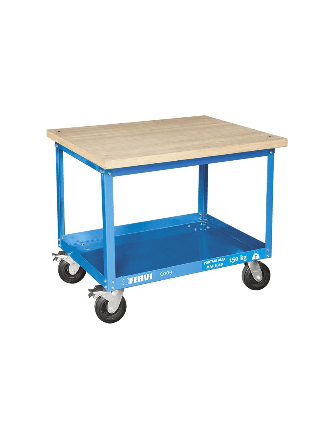 Chariot en acier, avec 2 roues fixes et 2 roues pivotantes avec frein.