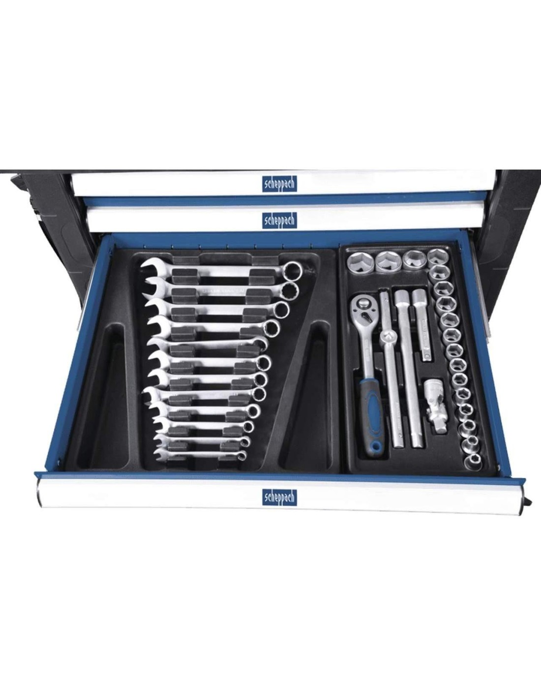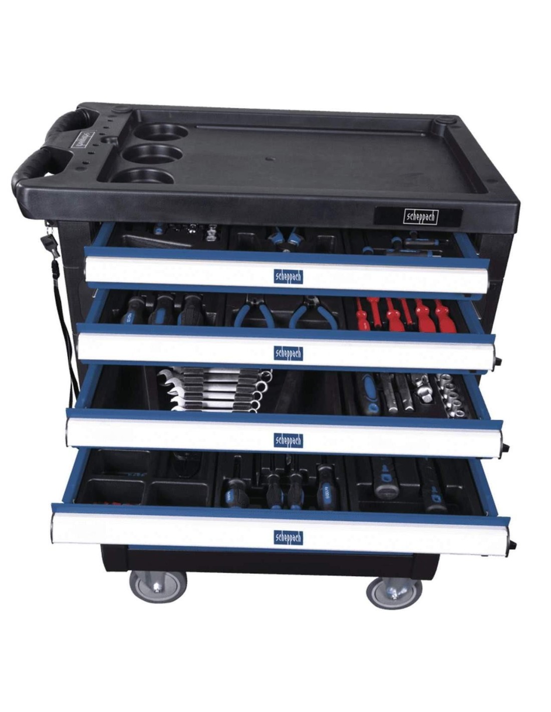 Toujours avoir le bon outil. L'armoire à roulettes Scheppach TW1000 est un atelier entièrement chargé sur roues.