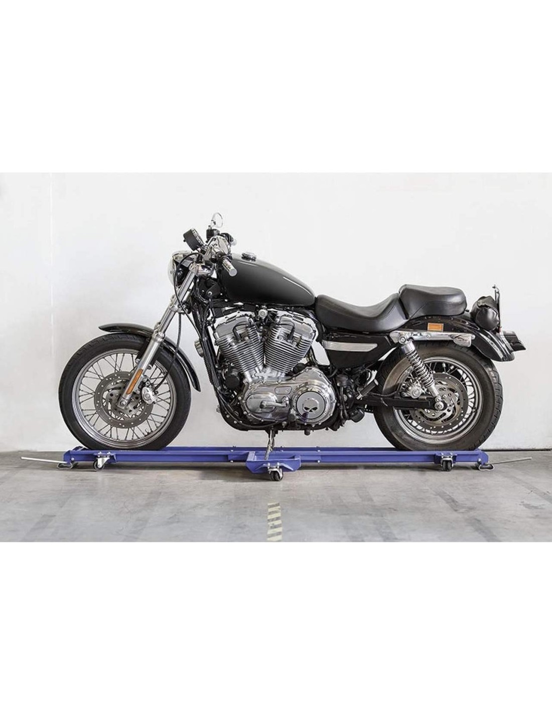 Acier peint par poudrage. Il convient aux motos et scooters qui ont la béquille latérale. Il vous permet de déplacer et de garer votre moto dans des espaces restreints.