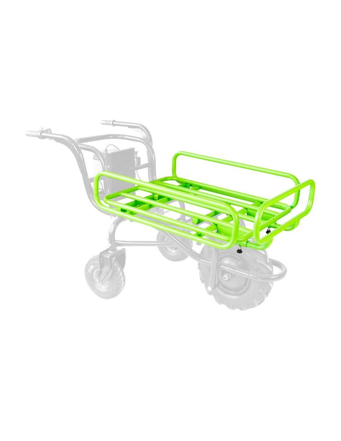 Châssis tubulaire pour brouette électrique ZIPPER ZI-EWB150-100l. Les parties latérales et avant du châssis peuvent être déplacées pour pouvoir transporter des objets volumineux.