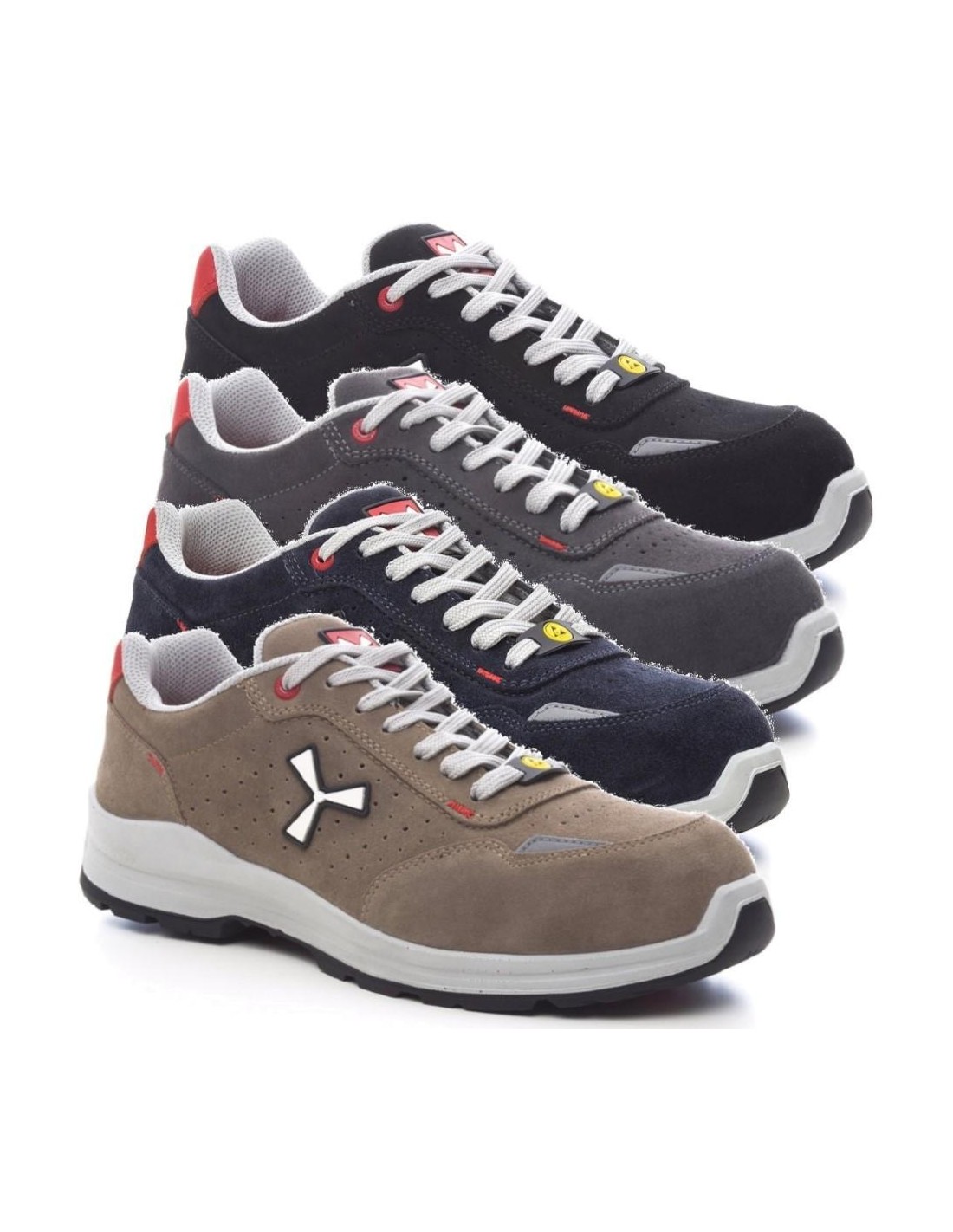 Chaussure de sécurité basse pour homme, tige en croûte perforée hydrofuge et respirante, doublure interne (sur toute la surface interne) respirante et résistante à l'abrasion, 1+1 œillets metalfree et 6+6 œillets à lacets renforcés, inserts réfléchissants dans le contrefort et sur le côté extérieur du bout, embout en aluminium pressé, orthèse plantaire amovible Ortholite X40 016 ESD, semelle en feuille textile certifiée anti-perforation, cambrion anti-entorse, bout dur en fer à cheval, première de montage en polyuréthane ultra-léger ESD, amortisseur MASTER BALANCE en PU polyéther à haute ténacité et densité équilibrée, semelle extérieure XTRAIL GRIP en TPU ESD avec contrefort et bout dur.