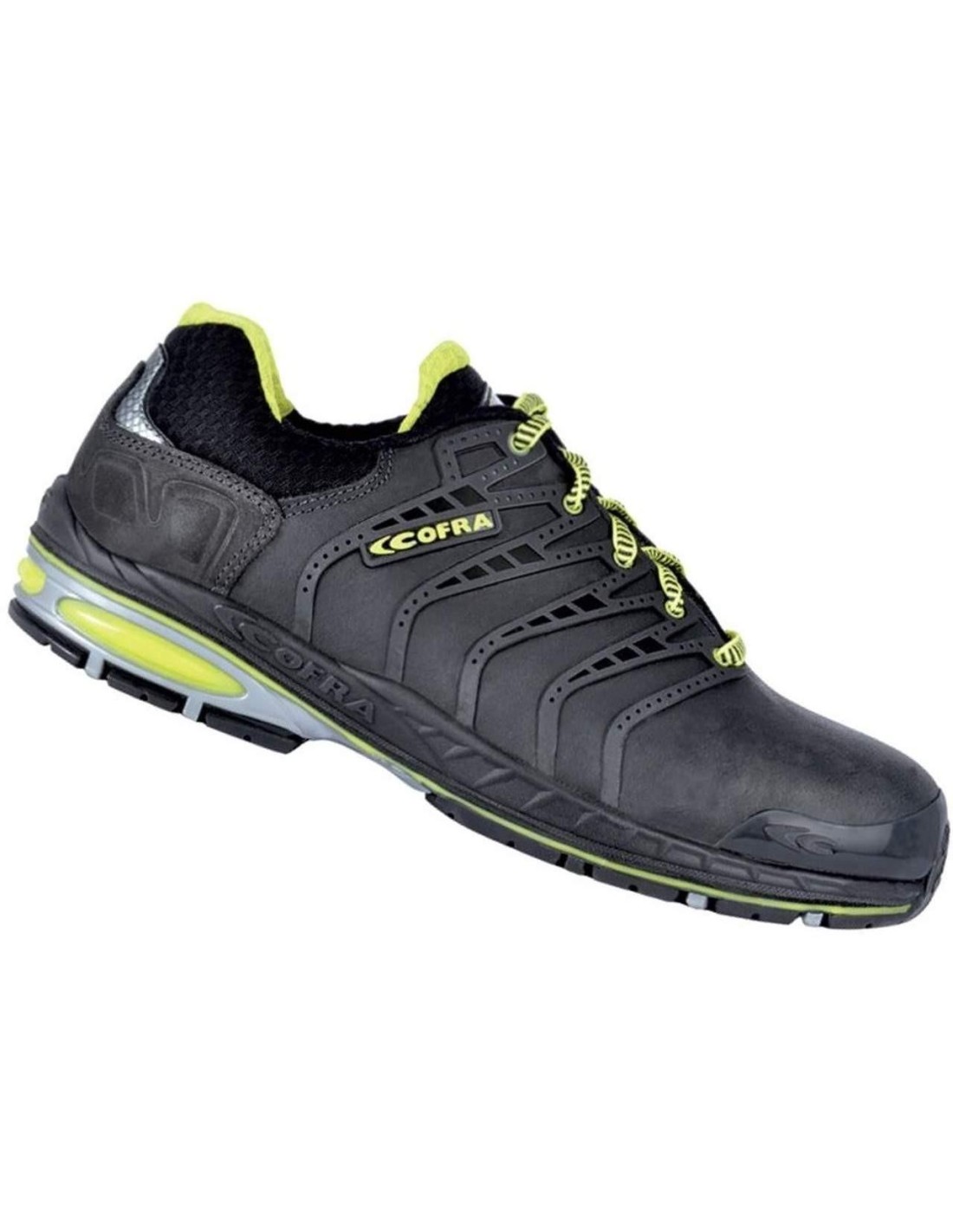 SEMELLE DE PROPRETE: COFRA SOFT, anatomique, antistatique, perforée, en polyuréthane parfumé, souple et confortable; le dessin de la couche inférieure garantit l'absorption de l'énergie d'impact (shock absorber) et une élevée résistance au glissement; la couche supérieure absorbe la sueur et laisse le pied toujours au sec