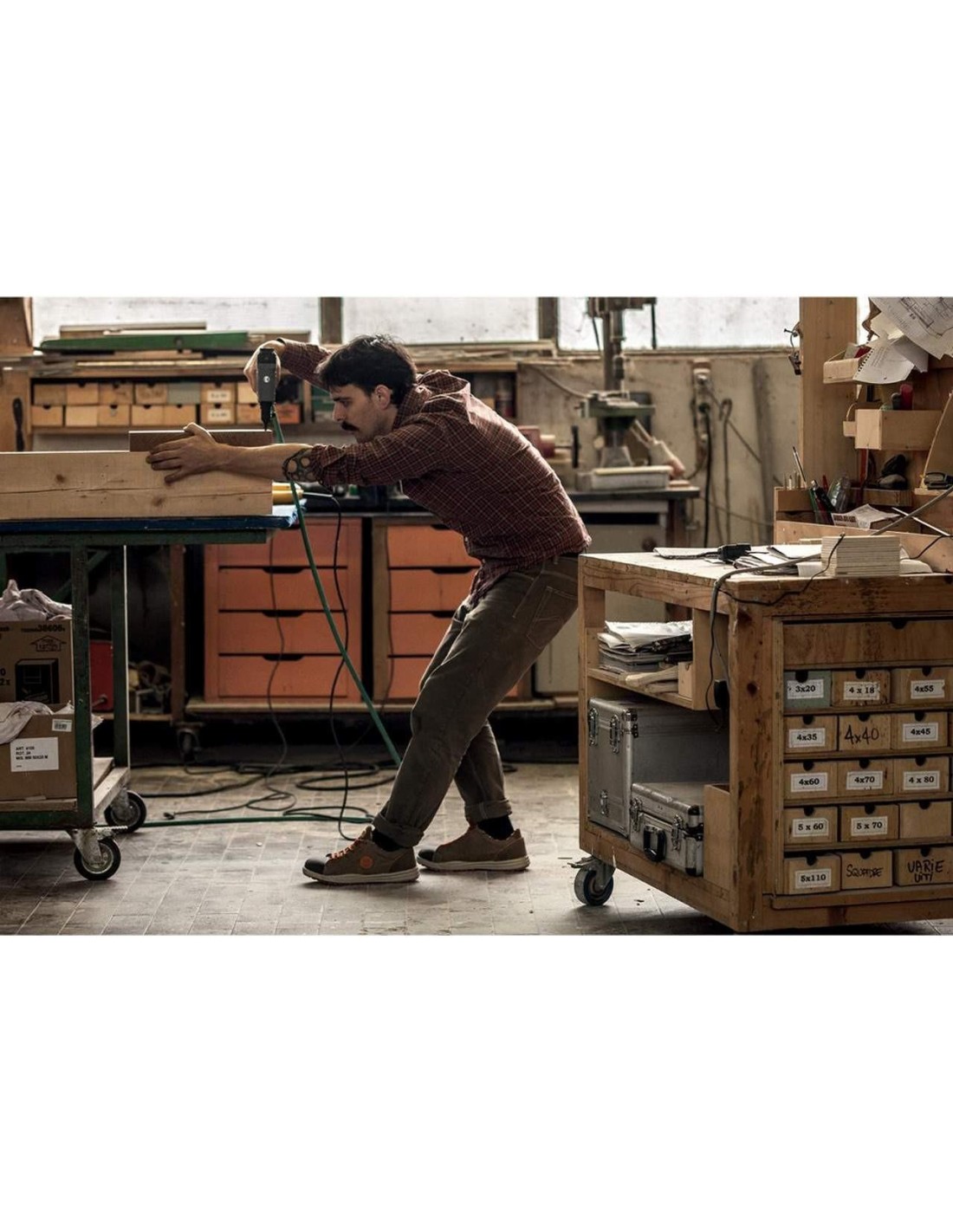 "Complètement" veut dire que nous nous occupons d'une façon maniaque de chaque phase de production, du choix du matériel jusqu'au lacet. Cela veut dire que Dike contrôle complètement la filière productive, c'est pourquoi nous pouvons parler sérieusement de made in Italy, voulant préciser que chaque chaussure de travail Dike nait et grandit en Italy, sous notre regard.