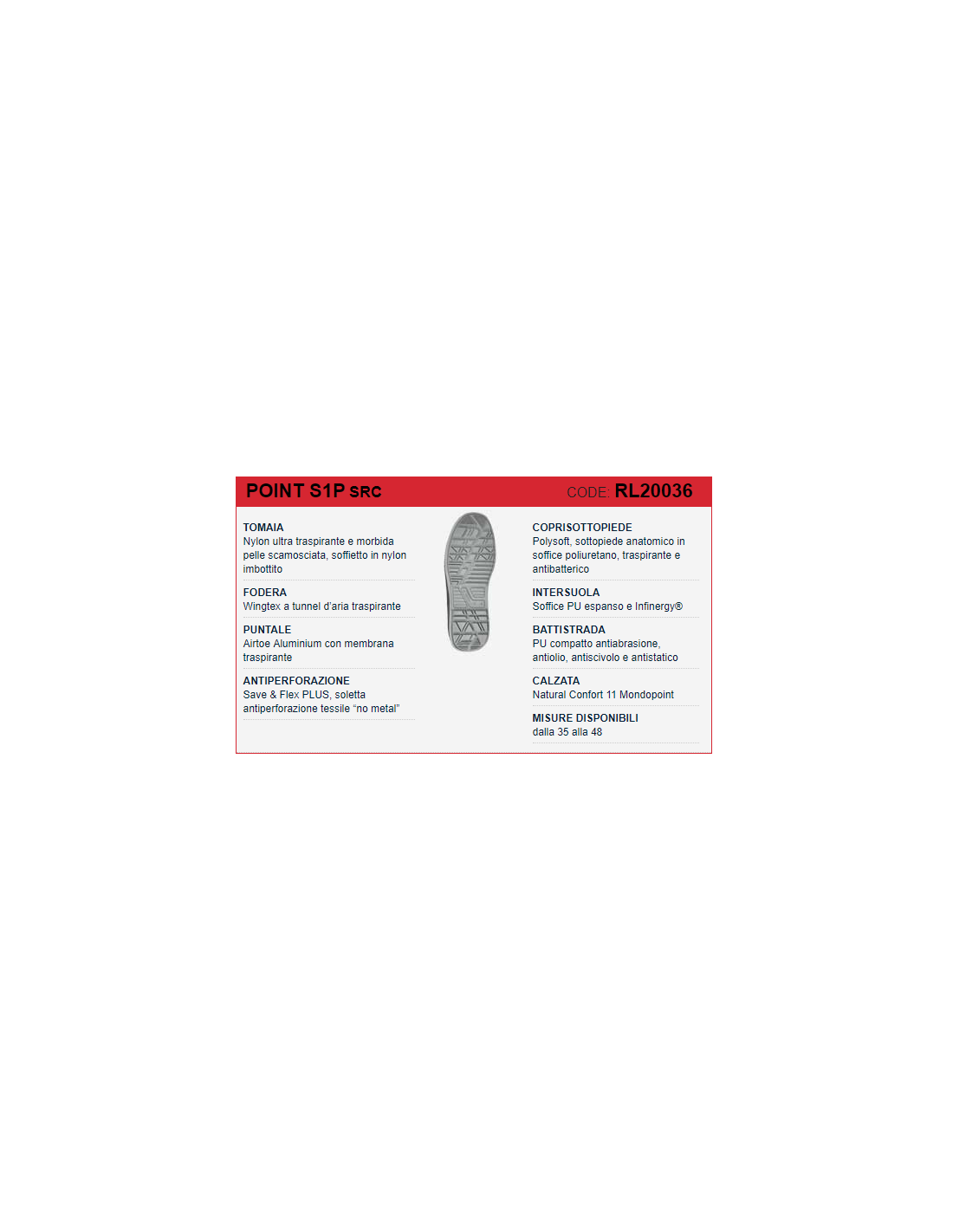 SEMELLE AMOVIBLE: Polysoft, semelle anatomique en polyuréthanne souple, respirante et antibactérienne