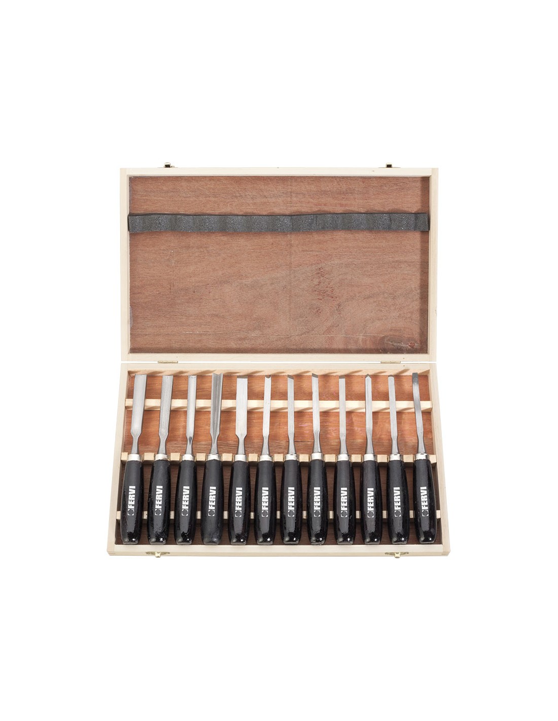 Coffre 12 gouges ciseaux outils a sculpter bois fervi 0306