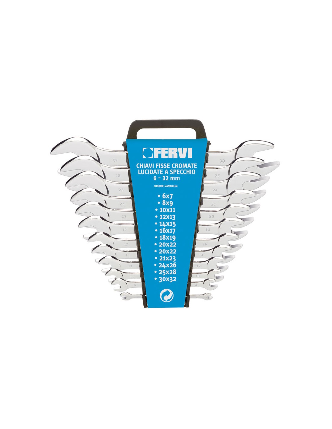 Coffre de jeu 12 pièces clé plate à fourches métrique chromé 6-32 mm fervi 0201