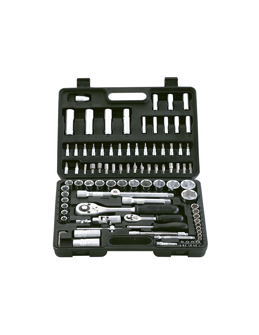 Douilles avec embouts: 1/4”: T8 - T10 - T15 - T20 - T25 - T30 - H3 - H4 - H5 - H6 - SL4 - SL5.5 - SL7 - PH1 - PH2 - Pcs1 - Pcs2