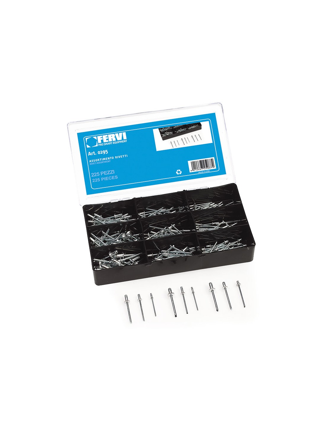 25 pièces 2,4 x 6,4 mm ; 25 pièces 2,4 x 8 mm ; 25 pièces 3,2 x 5 mm ; 25 pièces 3,2 x 6,4 mm ; 25 pièces 3,2 x 8 mm ; 25 pièces 4 x 6,4 mm ; 25 pièces 4 x 8 mm ; 25 pièces 4,8 x 6,4 mm ; 25 pièces 4,8 x 8 mm.