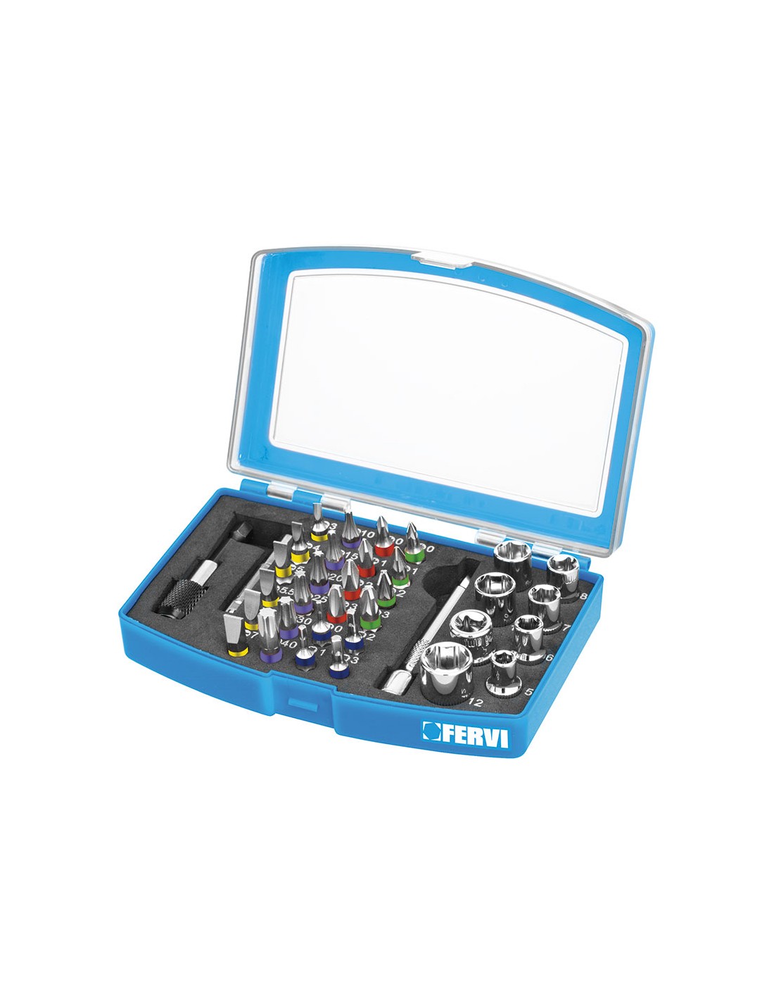 Avec embouts à revêtement nickel en acier S2, douilles en acier CR-V et porte-embout à changement rapide.