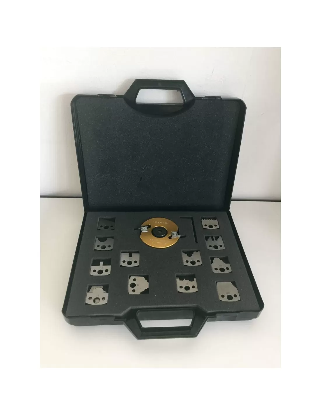 COFFRET PORTE-OUTILS AVEC 13 JEUX DE COUTEAUX PROFILÉS FERS POUR TOUPIE