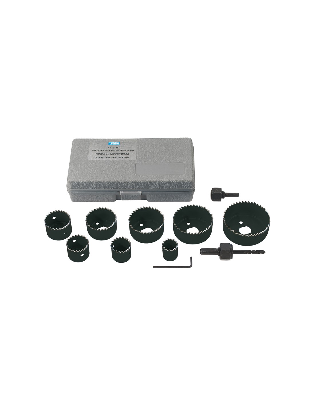 Coffret scie cloche pour bois + trou foret perceuse fervi 0238