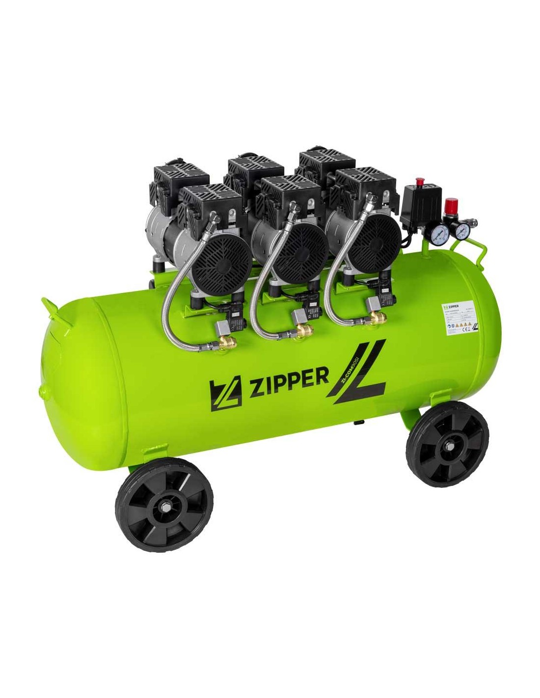 Le compresseur ZIPPER ZI-COM90SI de la série Silent est celui avec le plus grand volume de réservoir. Ses trois groupes motopompes sans huile alimentent parfaitement le réservoir de 90 litres et assurent un débit d'air de 140 - 8bar à 250 - 2bar l/min.