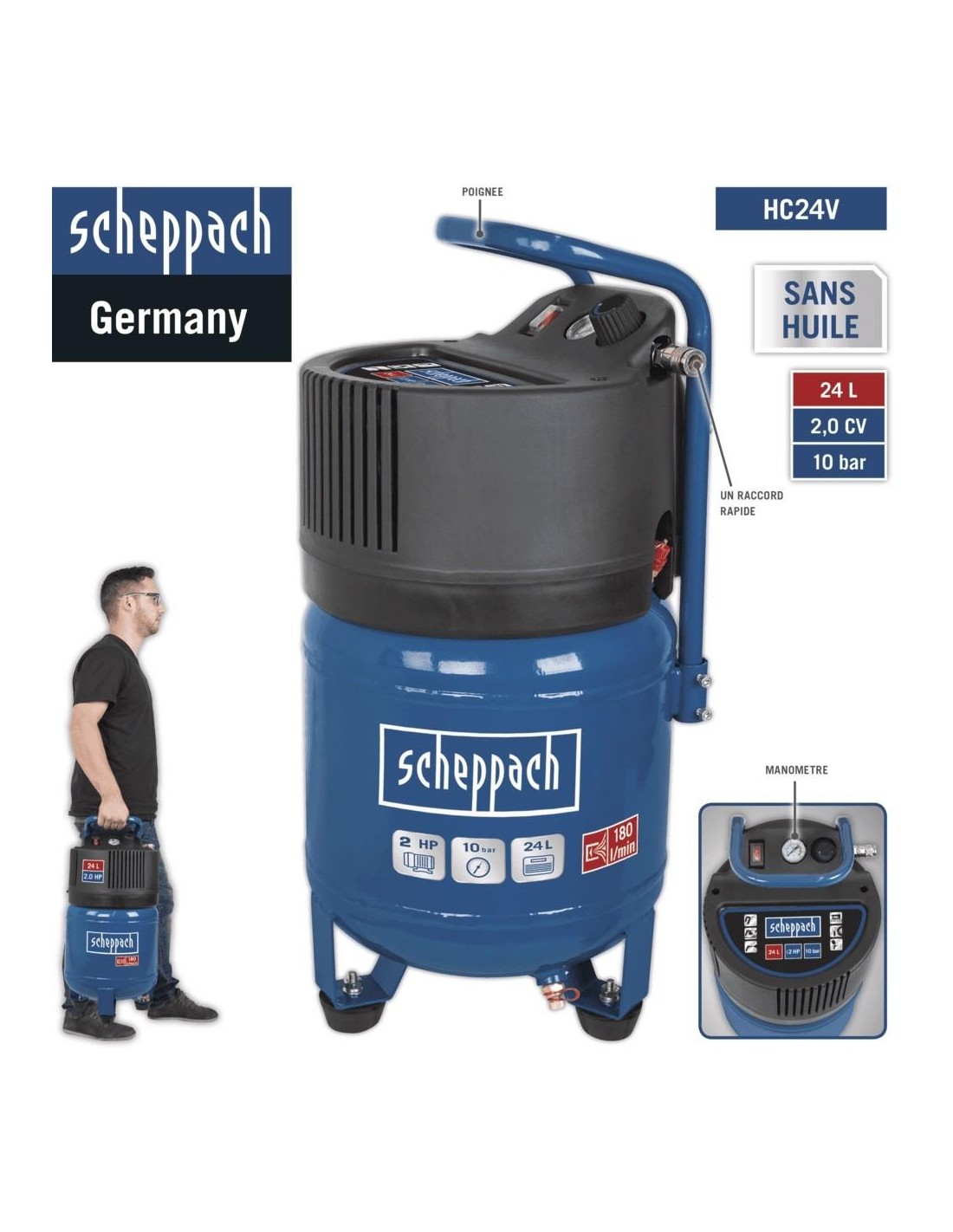 COMPRESSEUR D'AIRE 10 BAR MOTEUR ELECTRIQUE VERTICAL DE 24L SCHEPPACH HC24V: