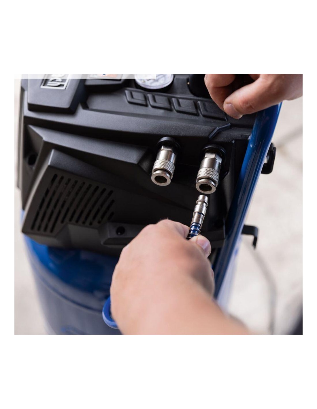 Le compresseur Scheppach HC51V est la solution idéale pour une large gamme de travaux avec des outils pneumatiques, tels que les travaux de gonflage des pneus, de soufflage et de clouage. Equipé d'un puissant moteur de 1500W, ce compresseur est conçu pour fonctionner sans huile, minimisant ainsi l’entretien requis. Avec un réservoir de 50 litres et une pression maximale de 10 bars, il garantit des performances élevées et constantes, tandis que le régulateur de pression permet de régler le niveau de pression optimal pour chaque activité. Grâce à sa structure verticale et compacte, le HC51V prend peu de place, ce qui le rend idéal pour une utilisation dans des espaces confinés. Le compresseur est également équipé de deux raccords rapides pour un changement rapide d'outils et d'un ensemble complet d'accessoires de 13 pièces, comprenant un pistolet à air comprimé, un manomètre pour pneus et un tuyau spiralé de 8 mètres.