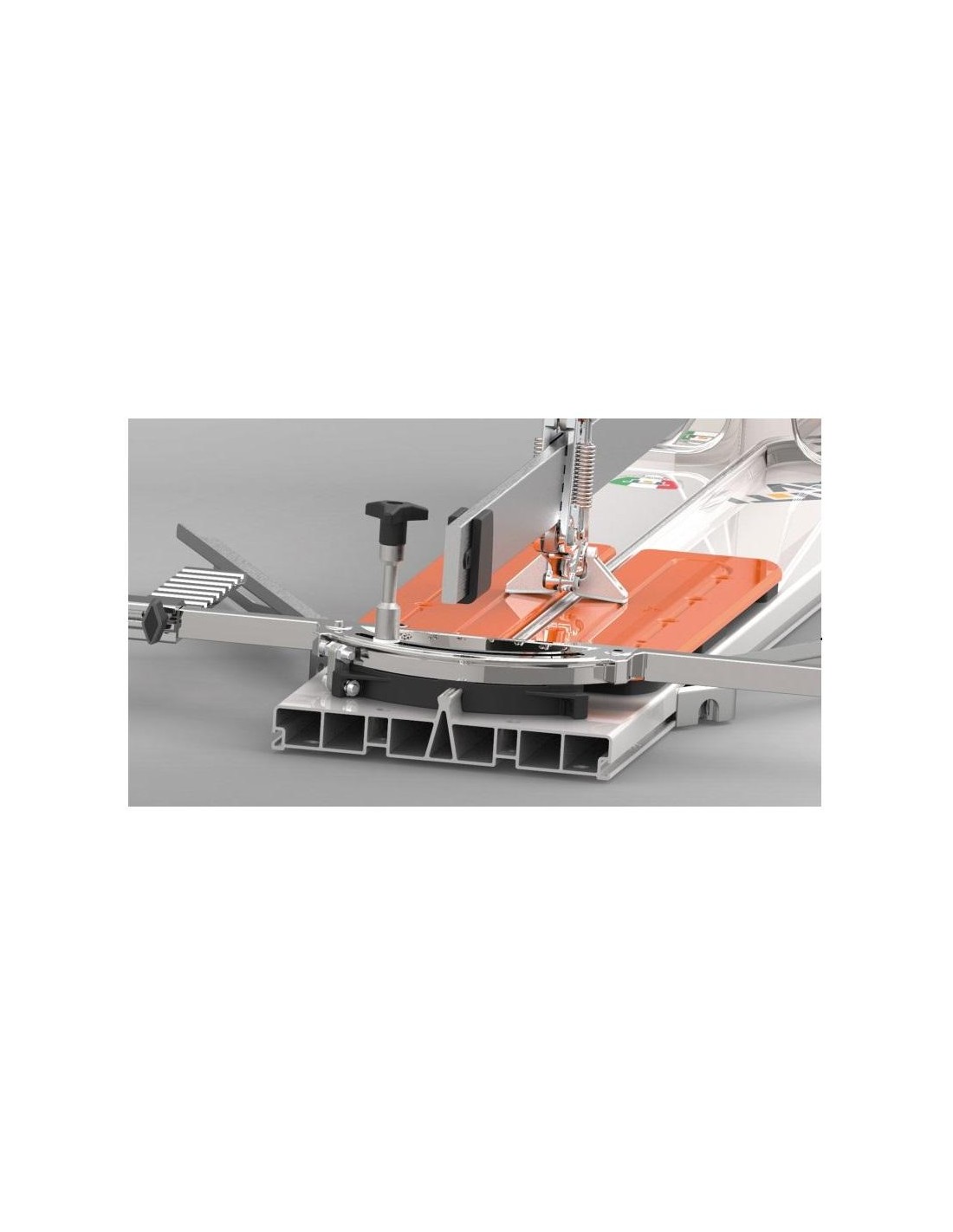 Chariot en aluminium équipé de deux roulements à billes réglables pour une fluidité parfaite et une précision maximale. Le chariot est équipé d'un système de démarrage rapide : la présence de ressorts rend la poignée toujours prête à couper.