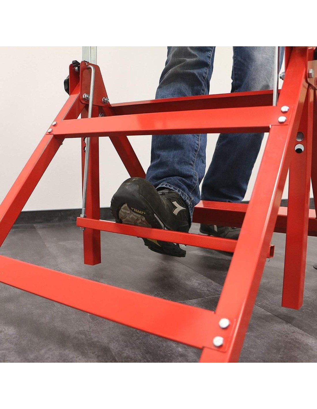 Par ailleurs, l'établi peut être replié pour gagner de la place et il est formé de tubes carrés robustes en acier.