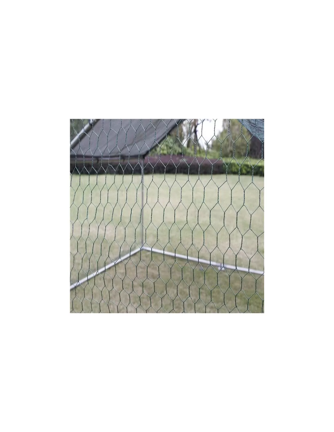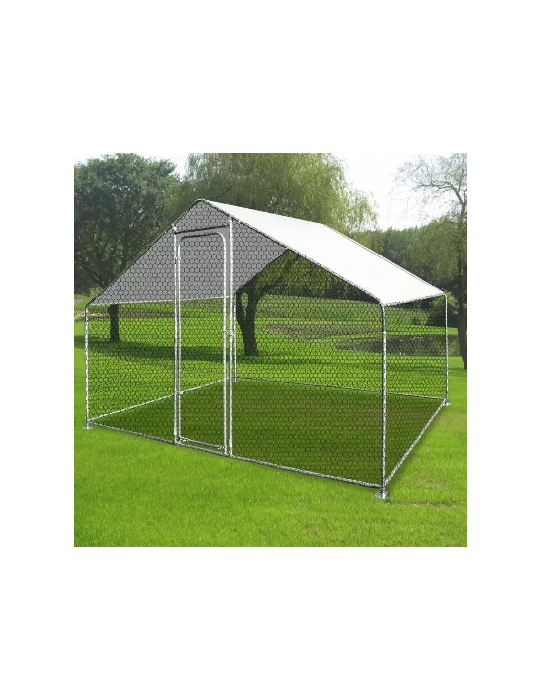 Structure grillagée: métal galvanisé revêtu de PVC, avec 1 porte, bâche anti-UV et imperméable