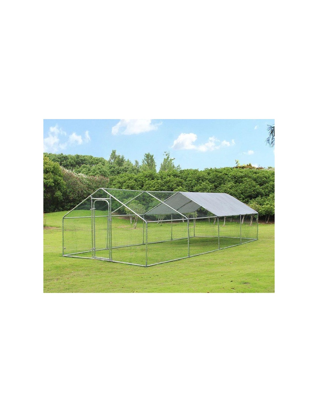 Structure grillagée: métal galvanisé revêtu de PVC, avec 1 porte, bâche anti-UV imperméable