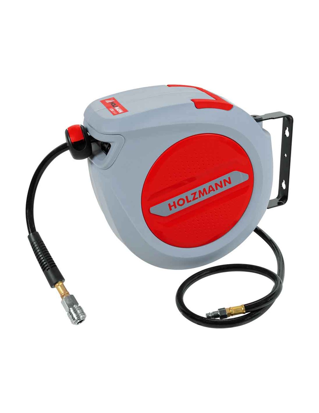 L'enrouleur de tuyau d'air comprimé HOLZMANN LSR10AIR est doté d'un support mural rotatif et d'un mécanisme de rembobinage automatique avec un mécanisme de guidage activé par une légère traction. Le boîtier en plastique robuste et le tuyau d'air en PVC de 10 m + 1,0 m permettent l'alimentation en air comprimé entre l'appareil et le raccord d'air comprimé.