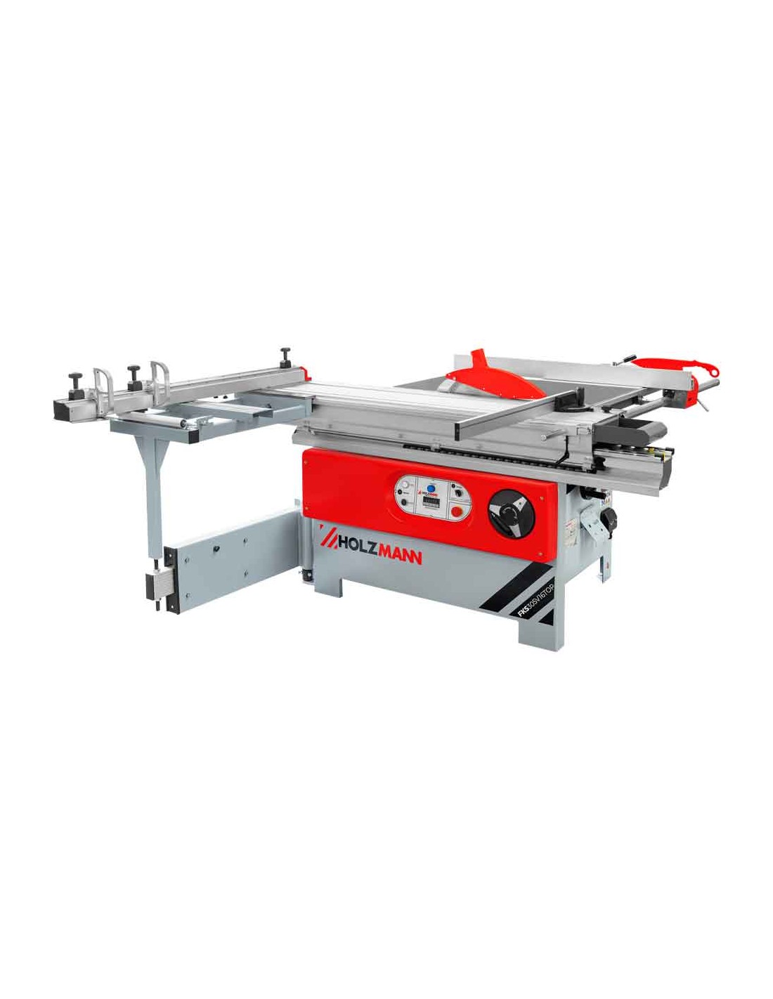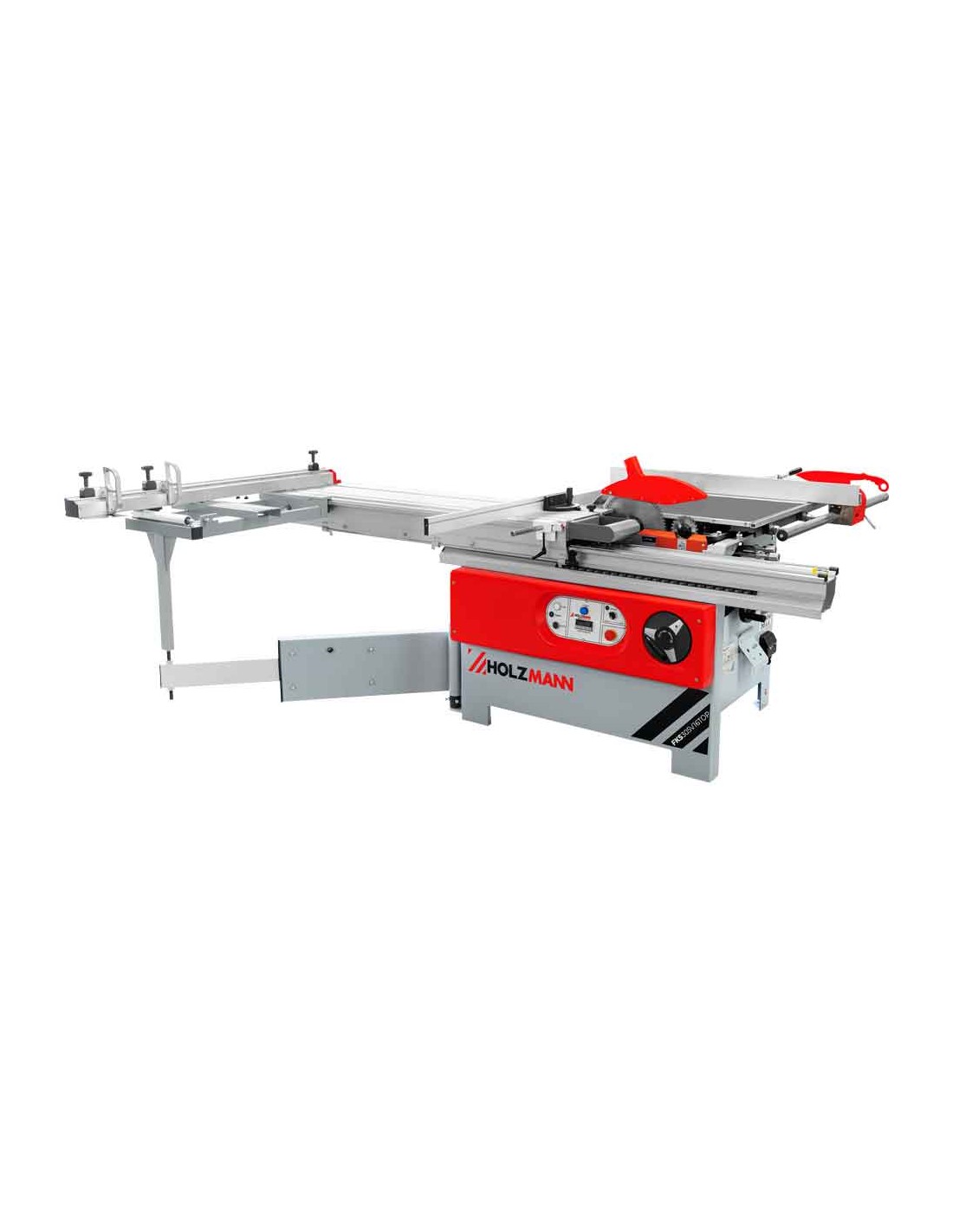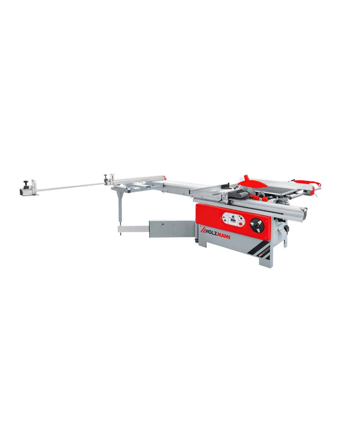 La scie circulaire HOLZMANN FKS305V16TOP_400 est équipée d'une table coulissante de 1,6 m, d'une inciseur (réglable en hauteur et latéralement), d'une rallonge de table, d'une lame de scie principale avec réglage de la hauteur et de l'angle, ainsi que d'une table pivotante pour des coupes précises dans un format compact.