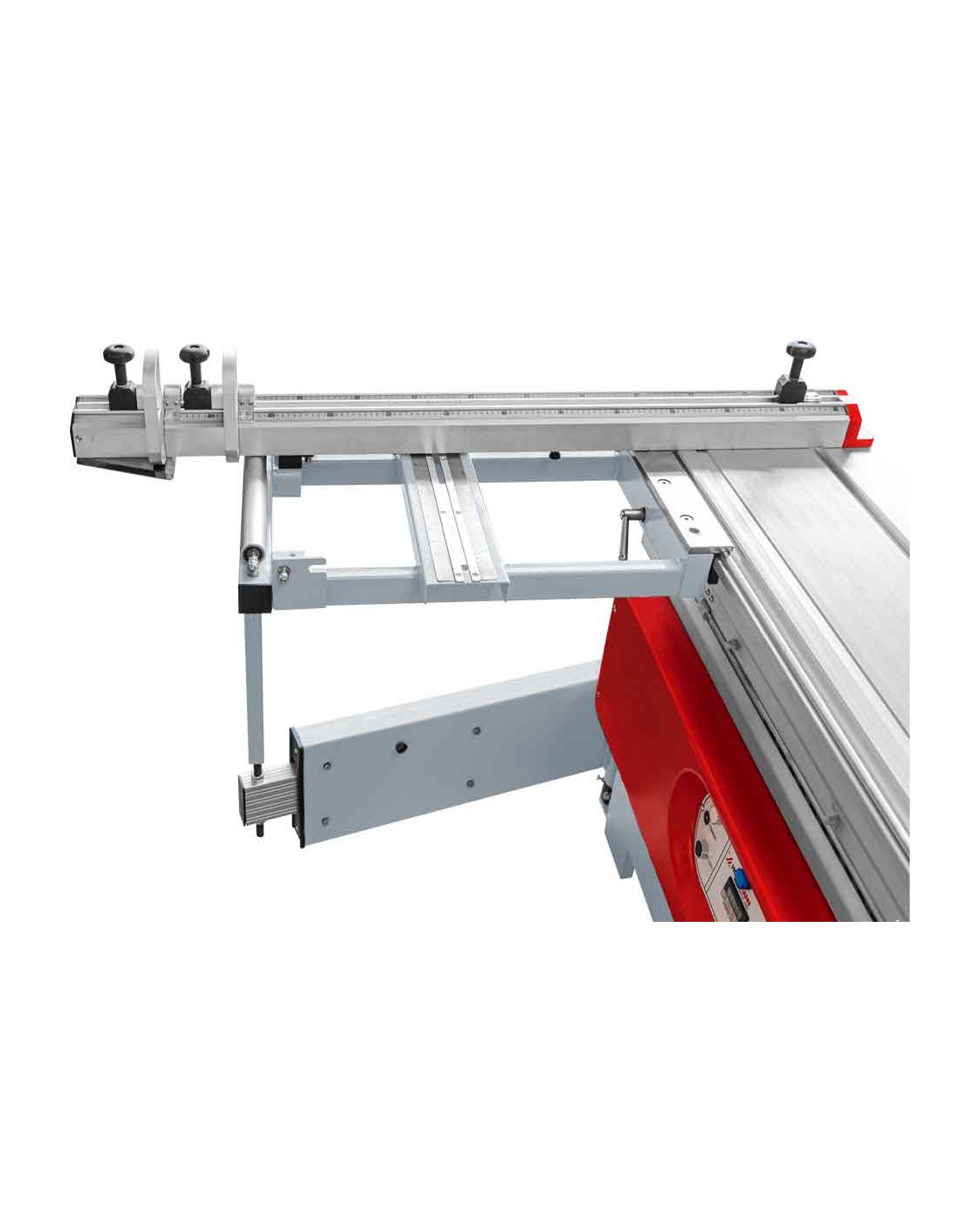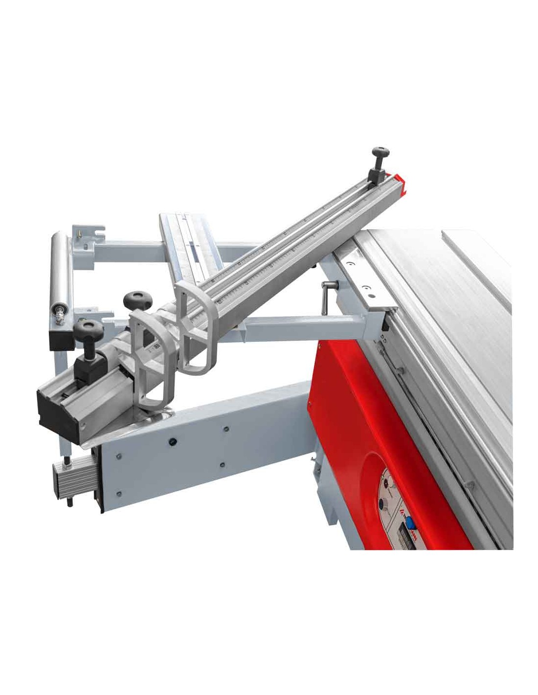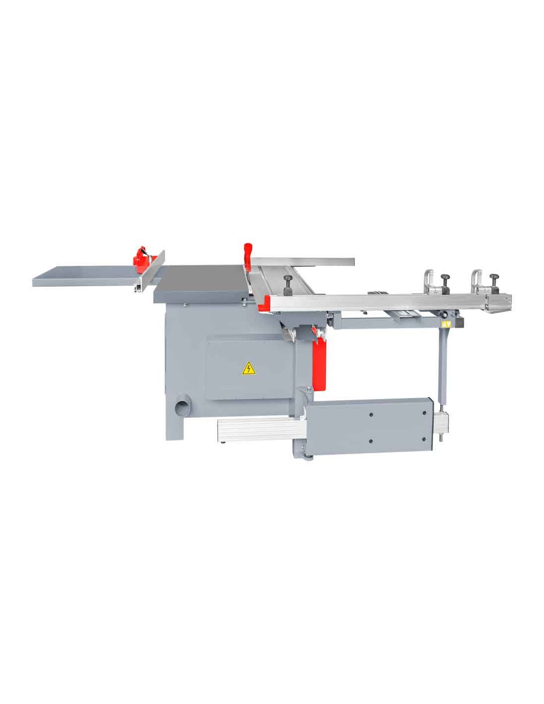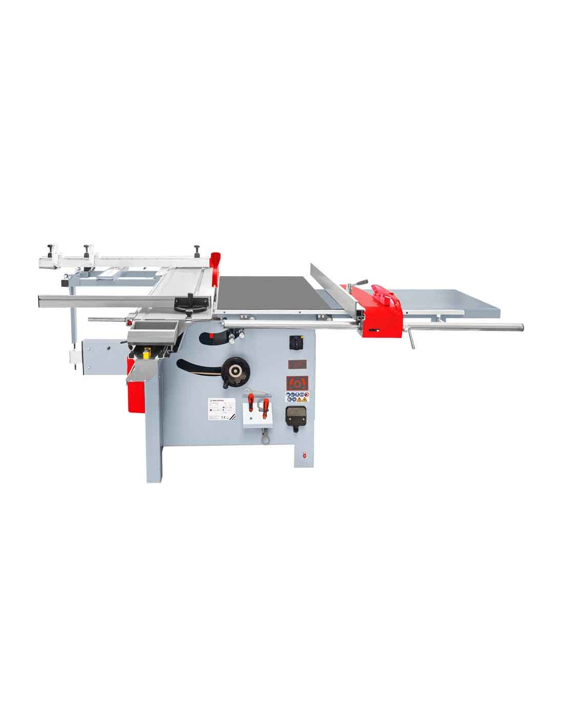La scie circulaire HOLZMANN FKS305V16TOP_400 est équipée d'une table coulissante de 1,6 m, d'une inciseur (réglable en hauteur et latéralement), d'une rallonge de table, d'une lame de scie principale avec réglage de la hauteur et de l'angle, ainsi que d'une table pivotante pour des coupes précises dans un format compact.