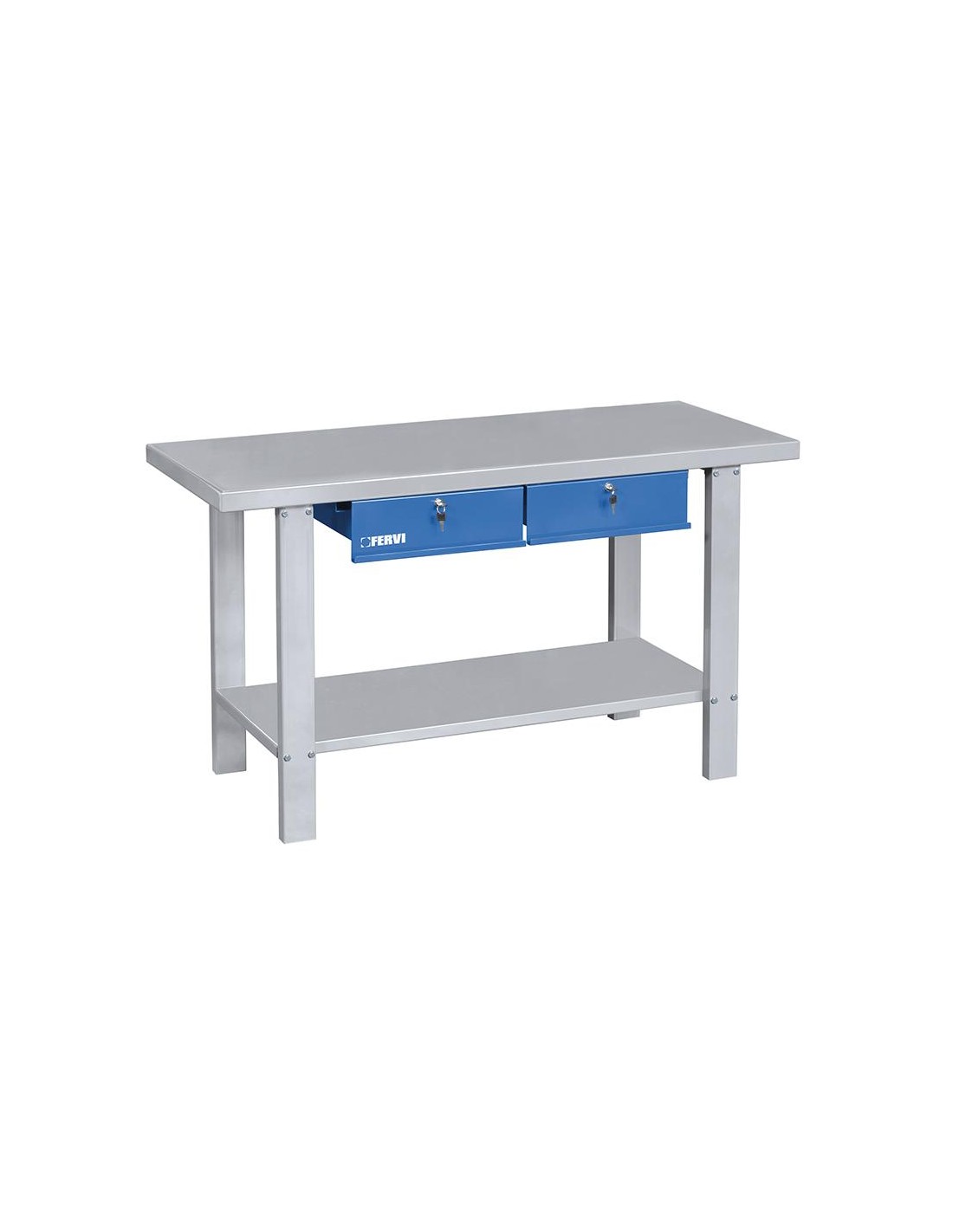 Avec plateau en acier et deux tiroirs verrouillables.