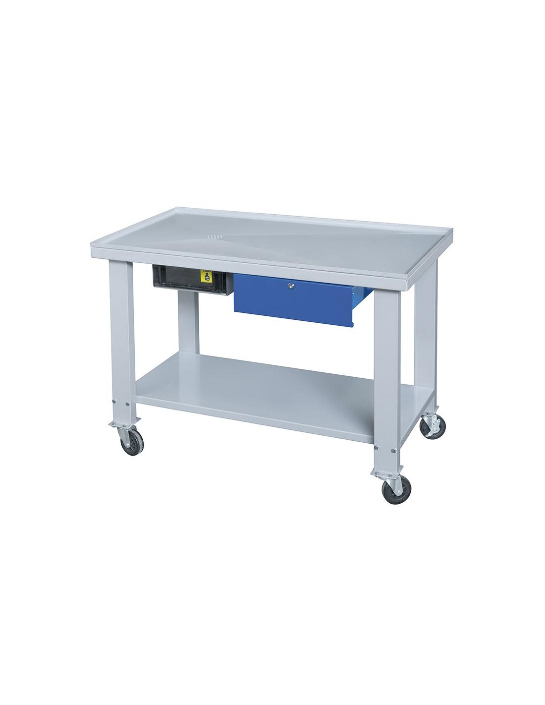 Livré en kit de montage, avec un tiroir équipé de serrure, cuve amovible et roulettes pivotantes, dont 2 avec frein de sécurité.
