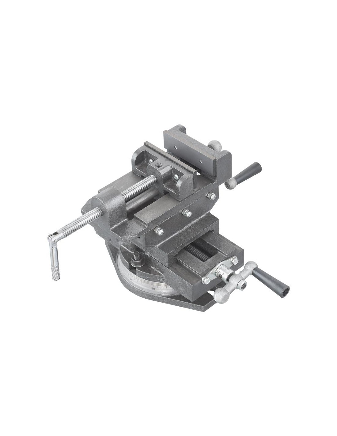 Utile pour effectuer des opérations de perçage ou de taraudage de précision grâce au mouvement longitudinal et latéral sans retirer la pièce de l'étau. Equipé d'une base pivotante.