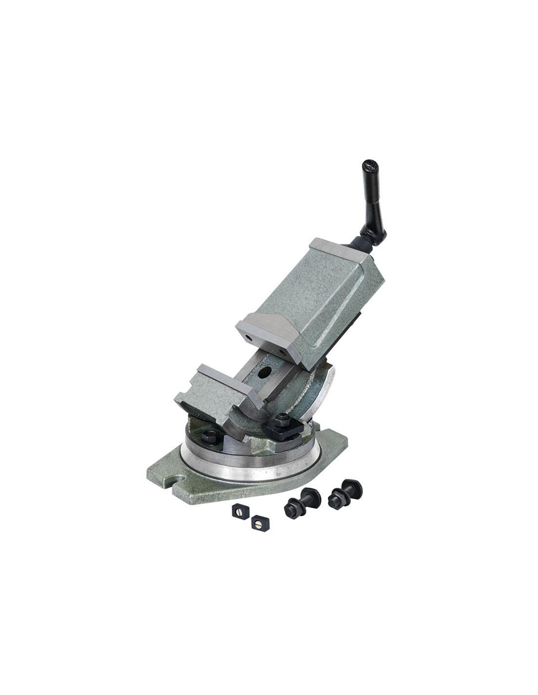 Avec mâchoires interchangeables en acier trempé et rectifié. Pièces coulissantes rectifiées. Vis entièrement recouverte. Avec manivelle et vis de fixation.
