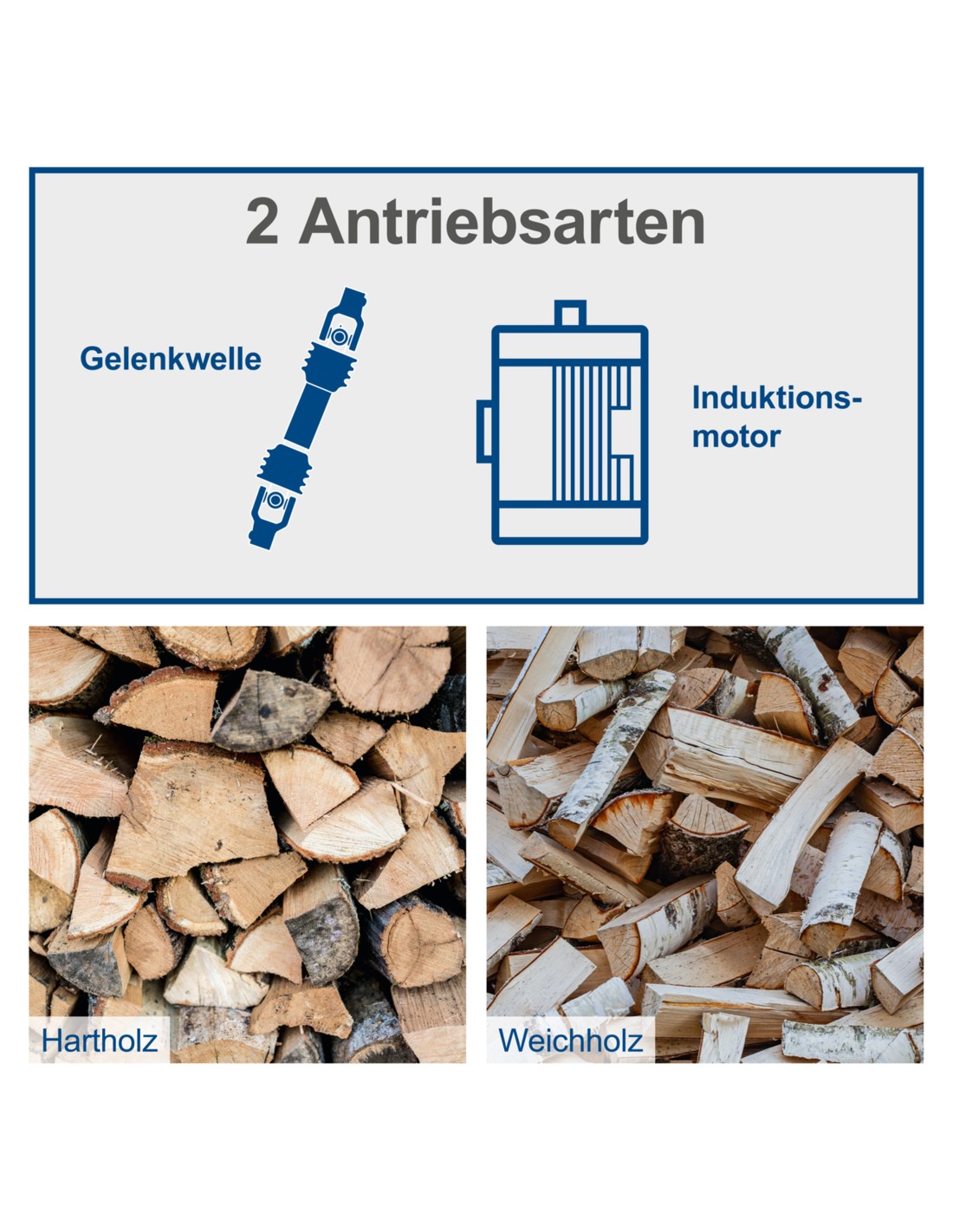 "Avec le puissant fendeur de bûches Scheppach de 25 tonnes, même les bois durs ne posent aucun problème. La combinaison d'un moteur 400 V et d'un entraînement par cardan rend le fendeur flexible et utilisable à tout moment, même en forêt. Avec sa longueur de bûche maximale de 110 cm, même des bûches d'un mètre de long peuvent être fendues facilement et sans problème, et le lève-bûches intégré facilite le levage des bûches.