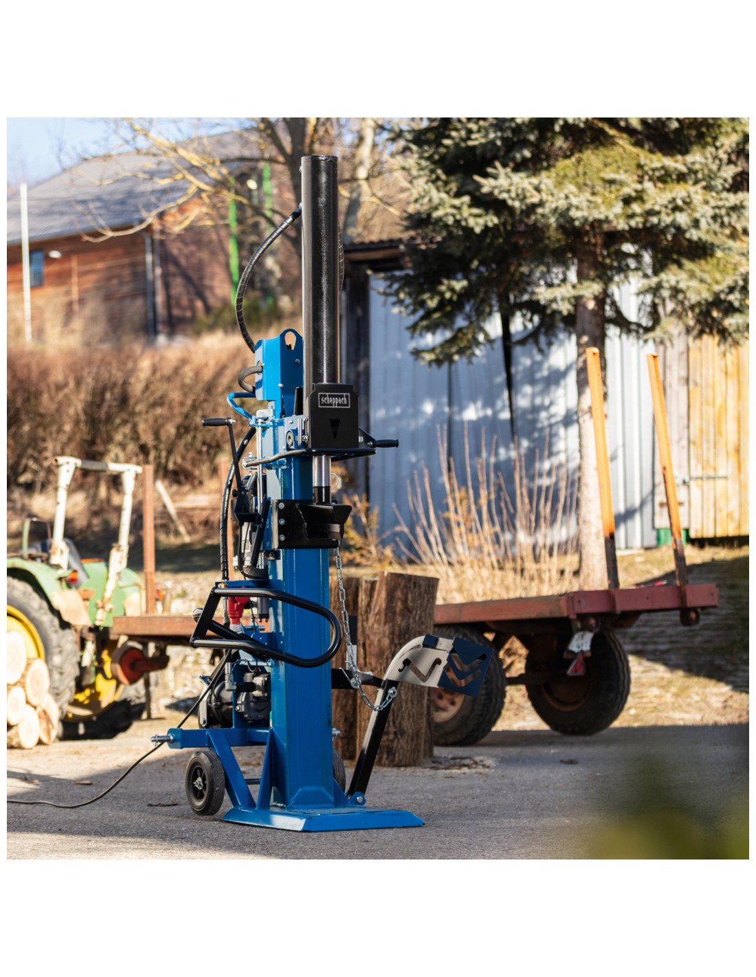 • Grâce au vérin abaissable et aux bras de support repliables, la fendeuse est peu encombrante