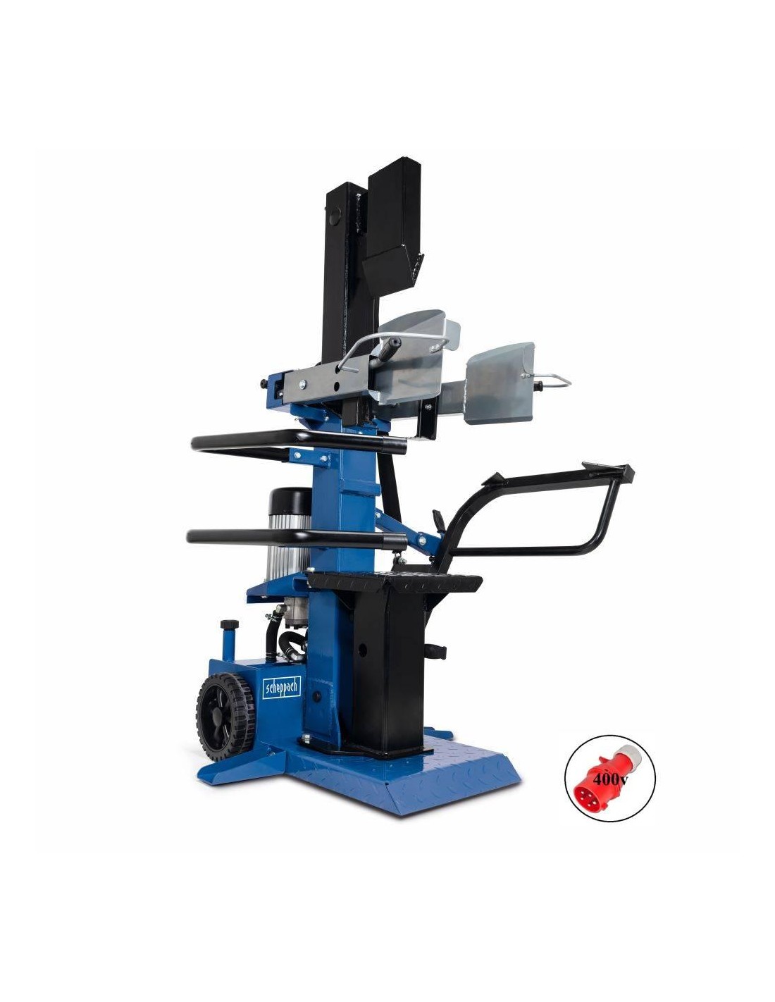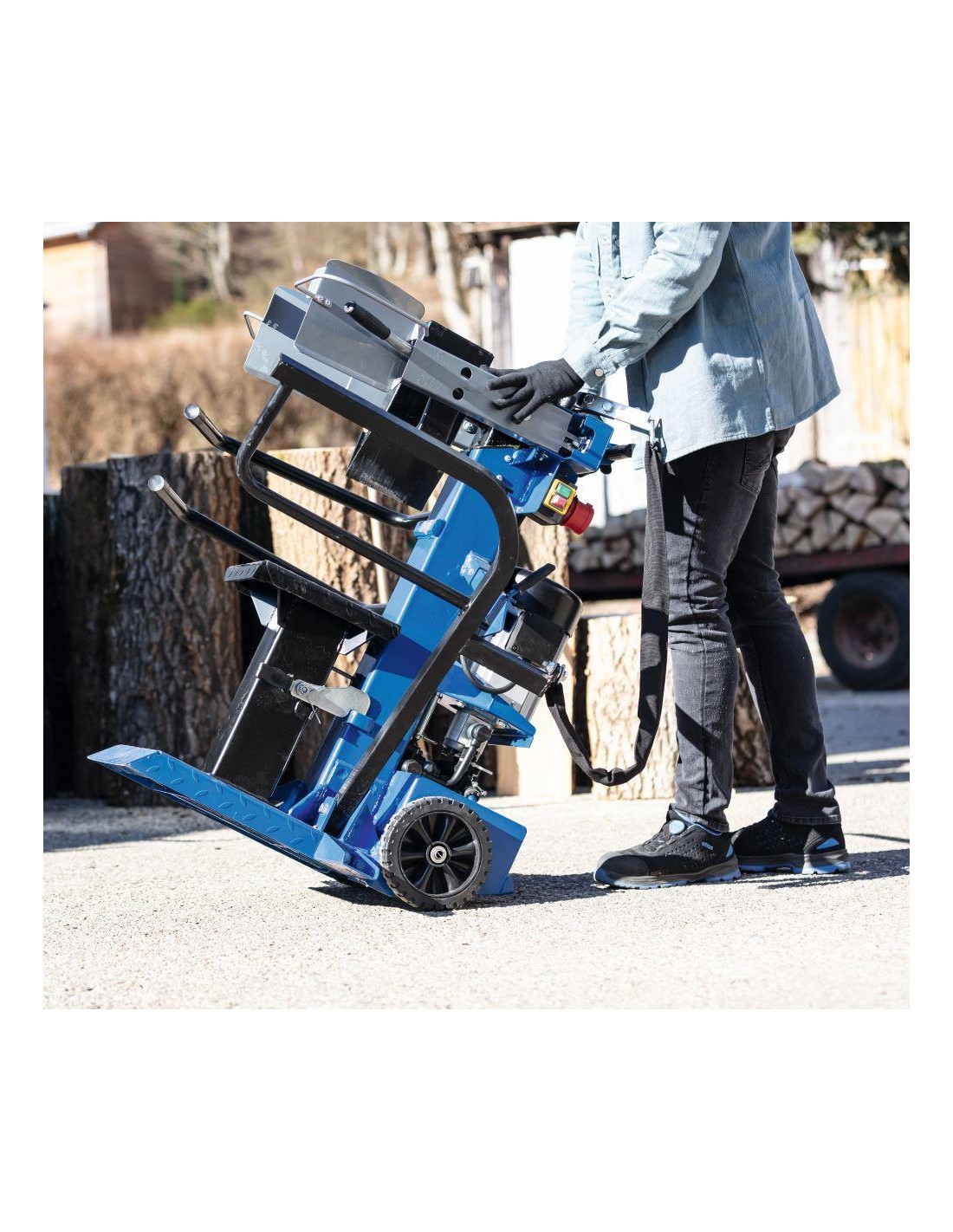 La fendeuse de bois traite sans effort le bois dur et tendre et ne nécessite qu'une prise normale de 400 V. Le support de sécurité et la commande bimanuelle assurent des conditions de sécurité optimales.